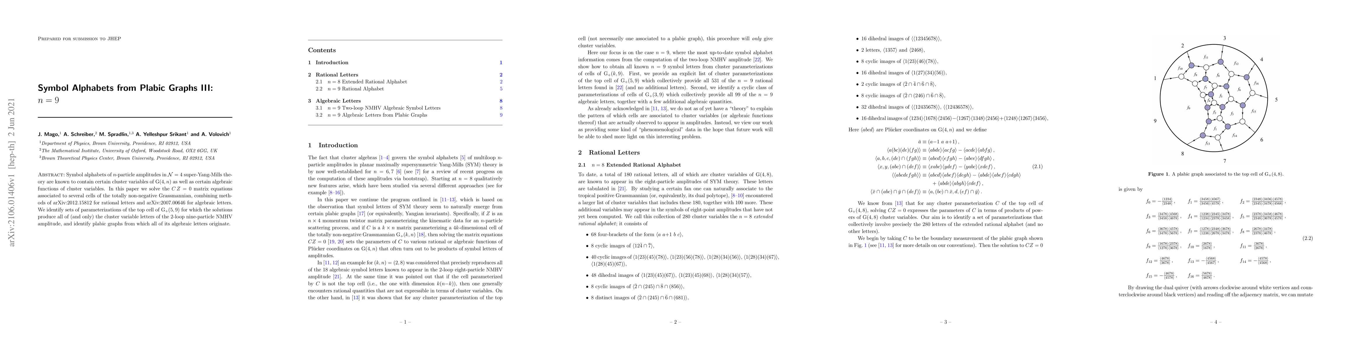 This paper solves matrix equations related to cluster variables of the Grassmannian for N=4 super-Yang-Mills theory, identifying parameterizations for the top cell of Gr_+(5,9) that yield all cluster variable letters of the 2-loop nine-particle amplitude, and tracing the origin of its algebraic letters to plabic graphs.