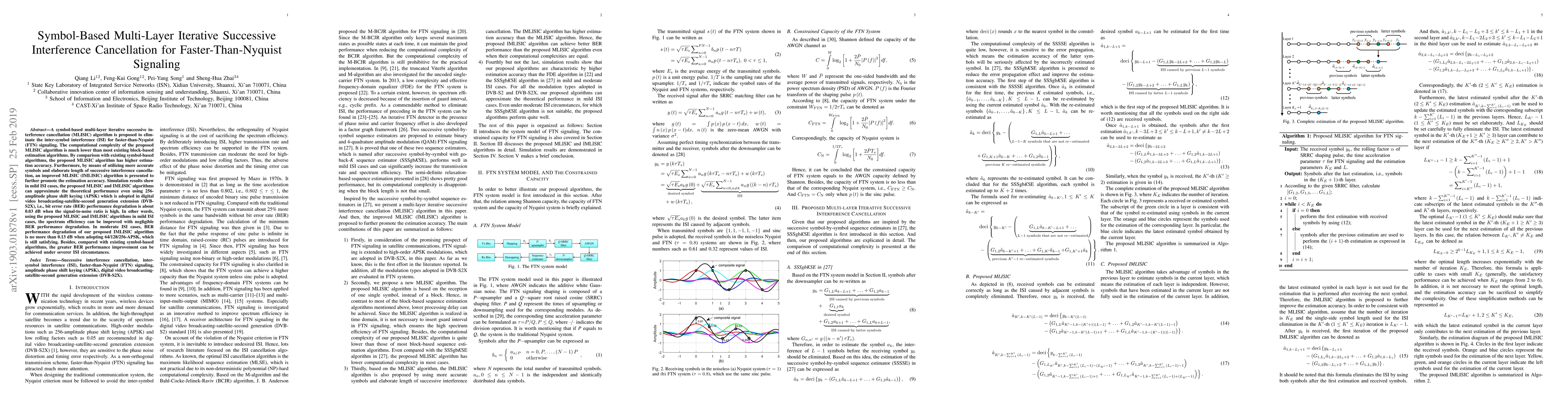 The paper proposes a symbol-based multi-layer iterative successive interference cancellation (MLISIC) algorithm to improve faster-than-Nyquist signaling by reducing inter-symbol interference with lower computational complexity and higher accuracy than existing block-based methods. An improved version (IMLISIC) further enhances accuracy, achieving negligible bit error rate performance degradation in mild to moderate ISI conditions, and significant BER improvement under severe ISI.