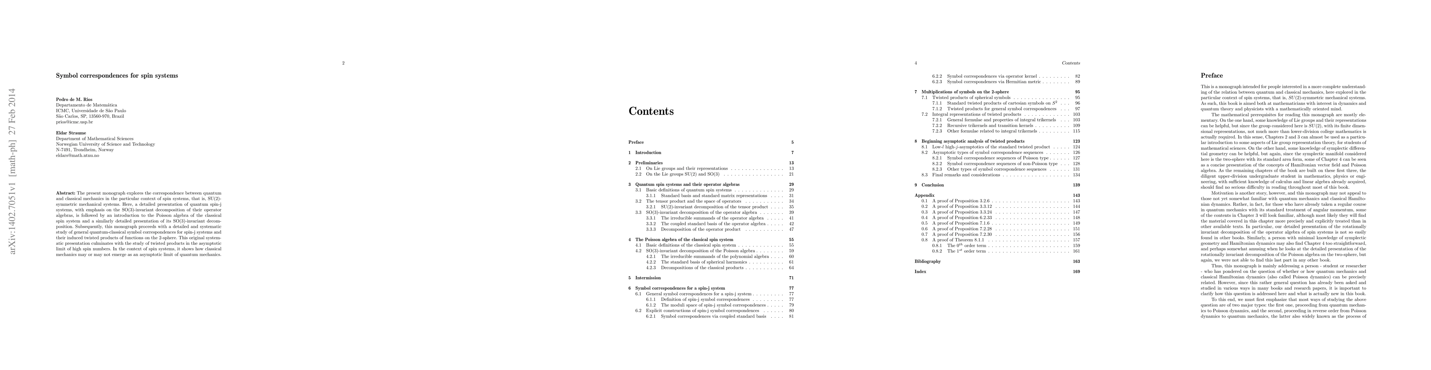 The present monograph explores the correspondence between quantum and classical mechanics in the particular context of spin systems, that is, SU(2)-symmetric mechanical systems. Here, a detailed presentation of quantum spin-j systems, with emphasis on the SO(3)-invariant decomposition of their operator algebras, is followed by an introduction to the Poisson algebra of the classical spin system and a similarly detailed presentation of its SO(3)-invariant decomposition. Subsequently, this monograph proceeds with a detailed and systematic study of general quantum-classical symbol correspondences for spin-j systems and their induced twisted products of functions on the 2-sphere. This original systematic presentation culminates with the study of twisted products in the asymptotic limit of high spin numbers. In the context of spin systems, it shows how classical mechanics may or may not emerge as an asymptotic limit of quantum mechanics.