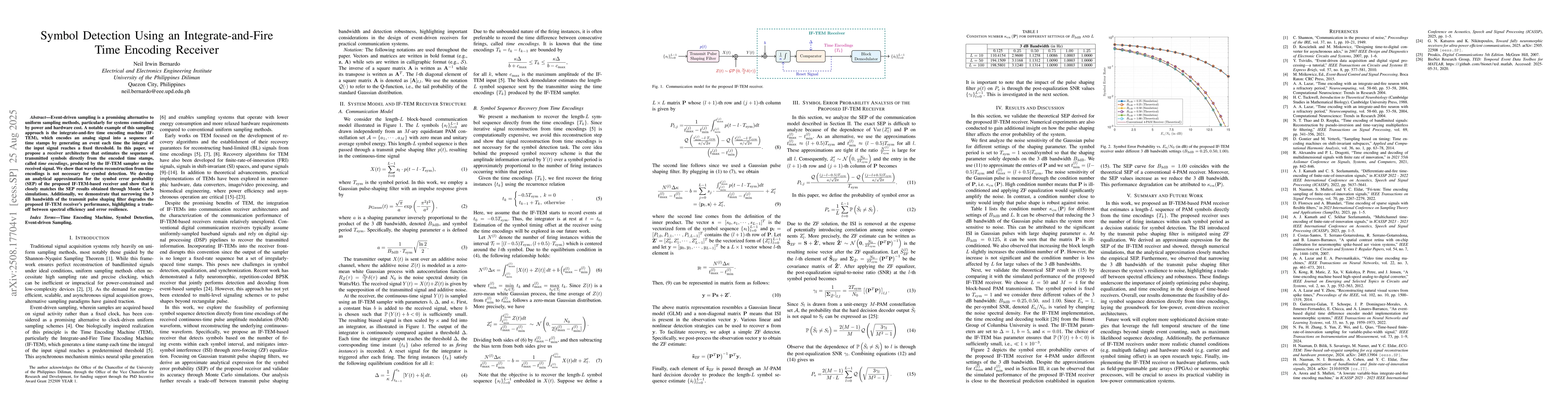 Event-driven sampling is a promising alternative to uniform sampling methods, particularly for systems constrained by power and hardware cost. A notable example of this sampling approach is the integrate-and-fire time encoding machine (IF-TEM), which encodes an analog signal into a sequence of time stamps by generating an event each time the integral of the input signal reaches a fixed threshold. In this paper, we propose a receiver architecture that estimates the sequence of transmitted symbols directly from the encoded time stamps, called time encodings, produced by the IF-TEM sampler on the received signal. We show that waveform reconstruction from time encodings is not necessary for symbol detection. We develop an analytical approximation for the symbol error probability (SEP) of the proposed IF-TEM-based receiver and show that it closely matches the SEP results obtained through Monte Carlo simulations. Additionally, we demonstrate that narrowing the 3 dB bandwidth of the transmit pulse shaping filter degrades the proposed IF-TEM receiver's performance, highlighting a trade-off between spectral efficiency and error resilience.