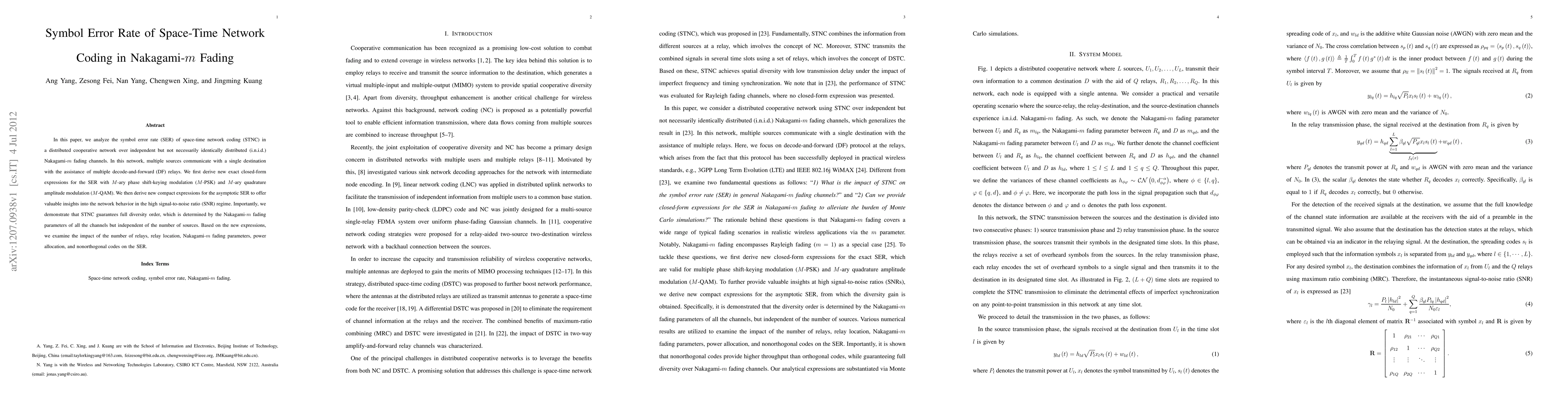 In this paper, we analyze the symbol error rate (SER) of space-time network coding (STNC) in a distributed cooperative network over independent but not necessarily identically distributed (i.n.i.d.) Nakagami-$m$ fading channels. In this network, multiple sources communicate with a single destination with the assistance of multiple decode-and-forward (DF) relays. We first derive new exact closed-form expressions for the SER with $M$-ary phase shift-keying modulation ($M$-PSK) and $M$-ary quadrature amplitude modulation ($M$-QAM). We then derive new compact expressions for the asymptotic SER to offer valuable insights into the network behavior in the high signal-to-noise ratio (SNR) regime. Importantly, we demonstrate that STNC guarantees full diversity order, which is determined by the Nakagami-$m$ fading parameters of all the channels but independent of the number of sources. Based on the new expressions, we examine the impact of the number of relays, relay location, Nakagami-$m$ fading parameters, power allocation, and nonorthogonal codes on the SER.