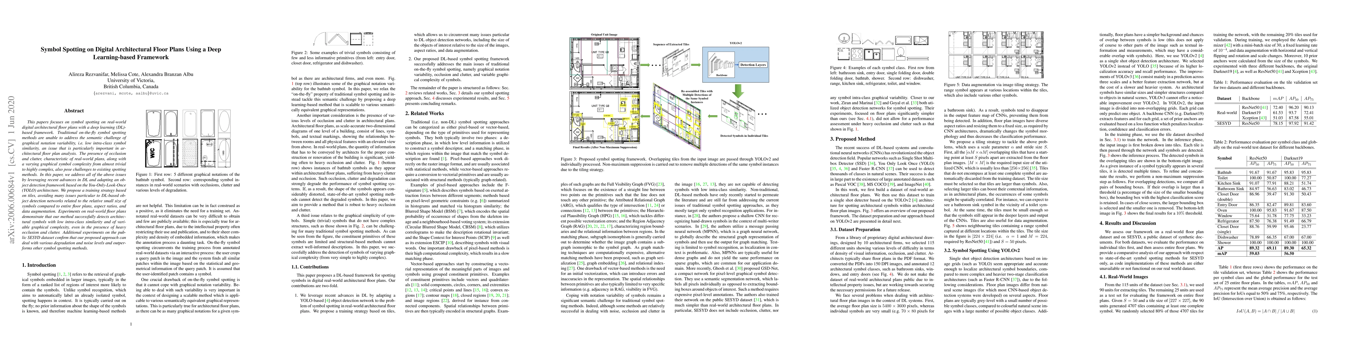 A deep learning-based framework is proposed to spot architectural symbols on digital floor plans, overcoming challenges of low intra-class similarity and graphical complexity, with success in real-world and public datasets.