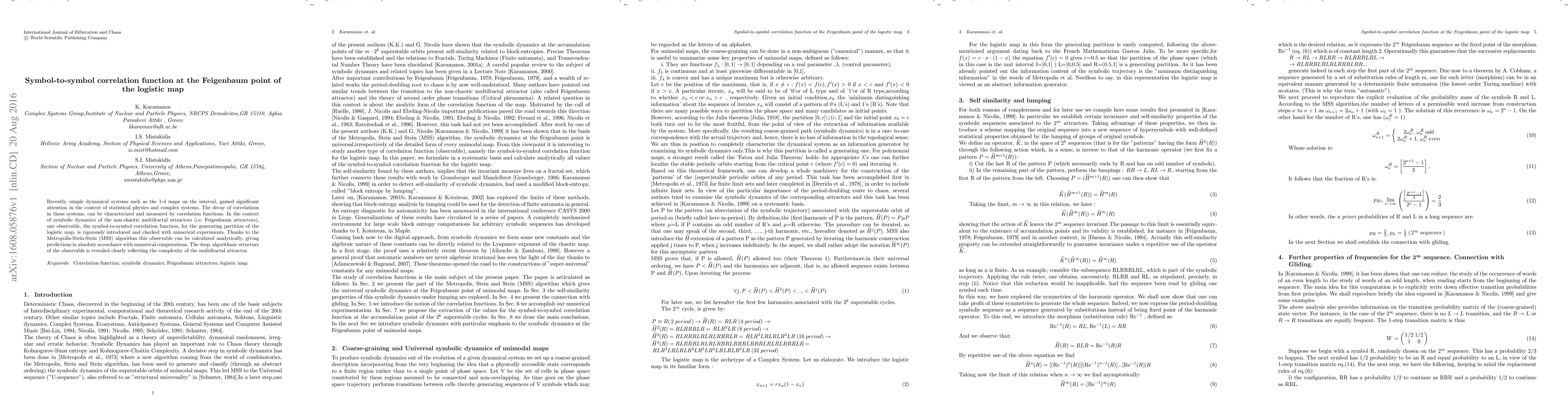 Researchers developed an analytical method to study correlations in chaotic systems using a symbol-to-symbol correlation function at the Feigenbaum point of the logistic map. This approach provides accurate predictions that match numerical computations.