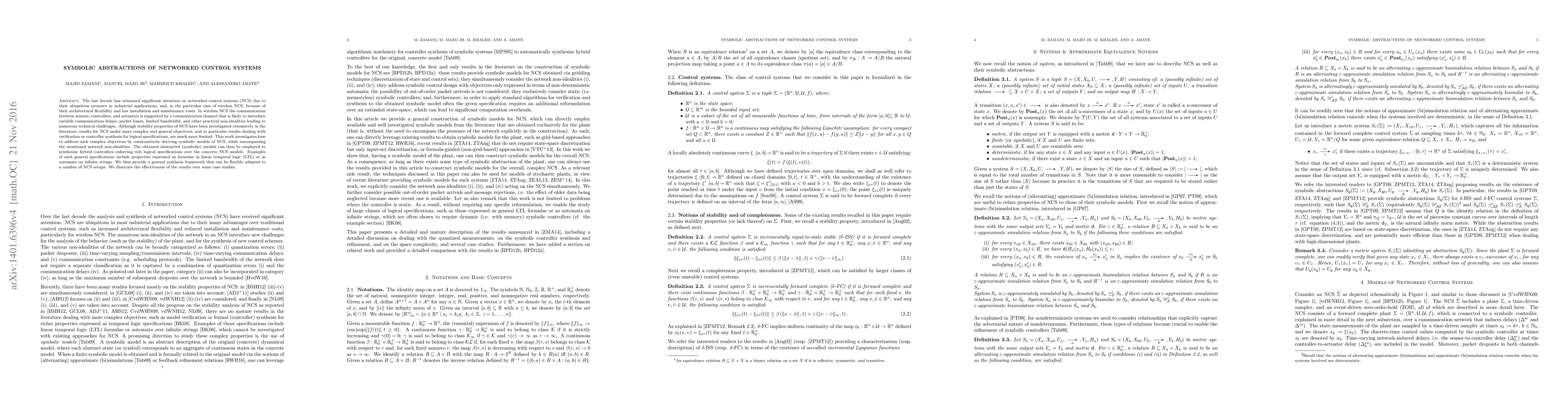 The last decade has witnessed significant attention on networked control systems (NCS) due to their ubiquitous presence in industrial applications, and, in the particular case of wireless NCS, because of their architectural flexibility and low installation and maintenance costs. In wireless NCS the communication between sensors, controllers, and actuators is supported by a communication channel that is likely to introduce variable communication delays, packet losses, limited bandwidth, and other practical non-idealities leading to numerous technical challenges. Although stability properties of NCS have been investigated extensively in the literature, results for NCS under more complex and general objectives, and in particular results dealing with verification or controller synthesis for logical specifications, are much more limited. This work investigates how to address such complex objectives by constructively deriving symbolic models of NCS, while encompassing the mentioned network non-idealities. The obtained abstracted (symbolic) models can then be employed to synthesize hybrid controllers enforcing rich logical specifications over the concrete NCS models. Examples of such general specifications include properties expressed as formulae in linear temporal logic (LTL) or as automata on infinite strings. We thus provide a general synthesis framework that can be flexibly adapted to a number of NCS setups. We illustrate the effectiveness of the results over some case studies.