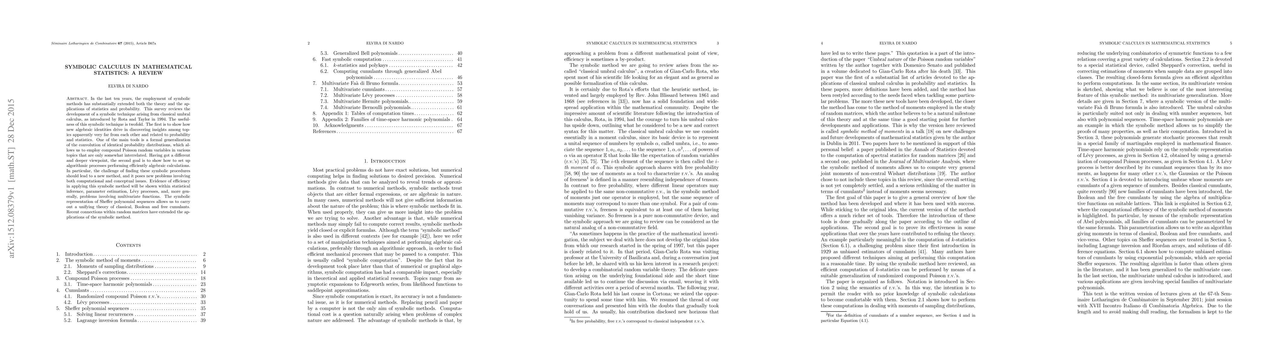 This paper reviews a symbolic calculus technique that has extended the theory and applications of statistics and probability in the last decade, offering new insights and efficient algorithmic processes.