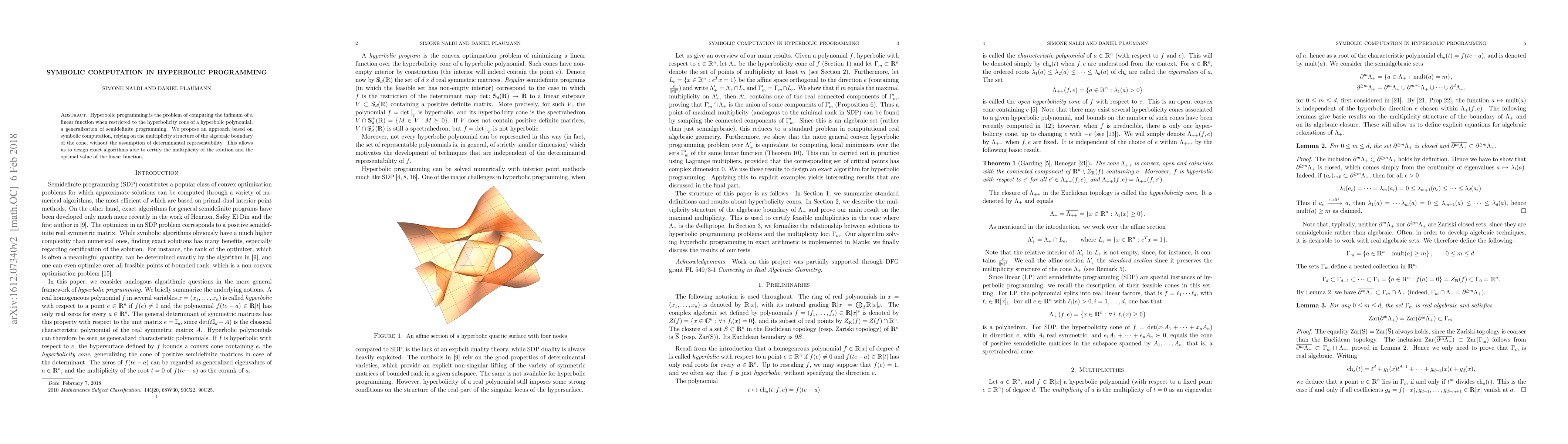 Hyperbolic programming is the problem of computing the infimum of a linear function when restricted to the hyperbolicity cone of a hyperbolic polynomial, a generalization of semidefinite programming. We propose an approach based on symbolic computation, relying on the multiplicity structure of the algebraic boundary of the cone, without the assumption of determinantal representability. This allows us to design exact algorithms able to certify the multiplicity of the solution and the optimal value of the linear function.