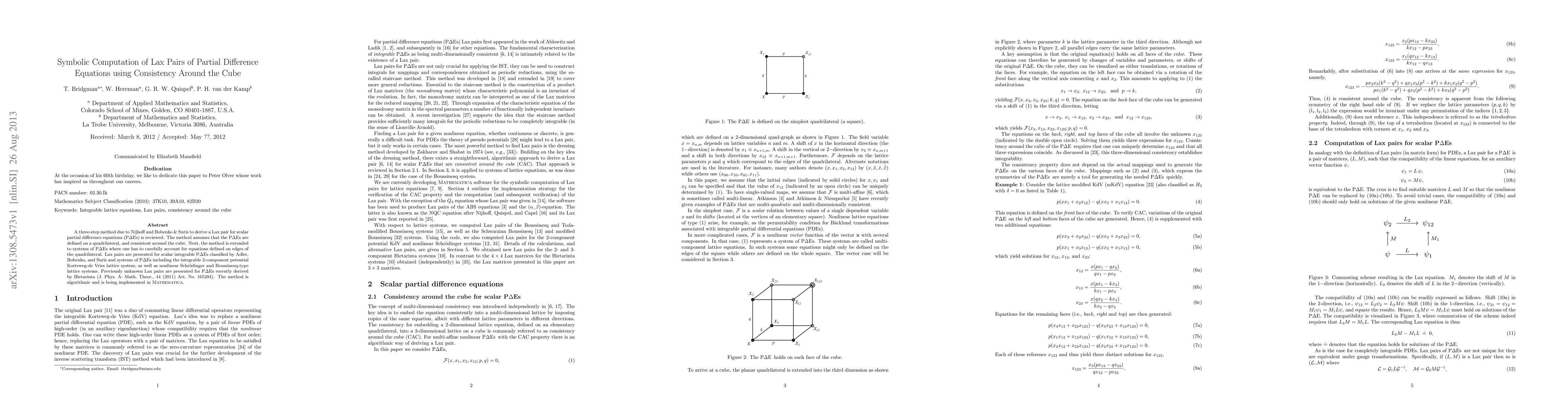 This paper reviews a method to derive Lax pairs for scalar partial difference equations (PDE) using consistency around the cube, extending it to systems of PDEs. It presents previously unknown Lax pairs for recently derived PDEs and is being implemented in Mathematica.