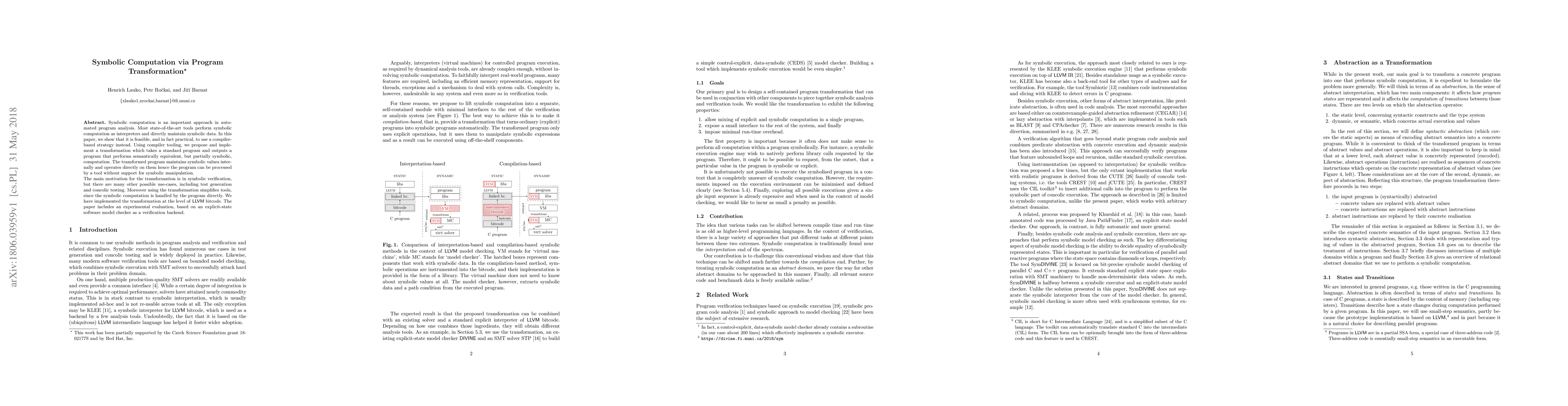 The paper introduces a transformation that converts standard programs into ones capable of performing semantically equivalent, partially symbolic computations internally, simplifying tools by handling symbolic computation directly within the program.