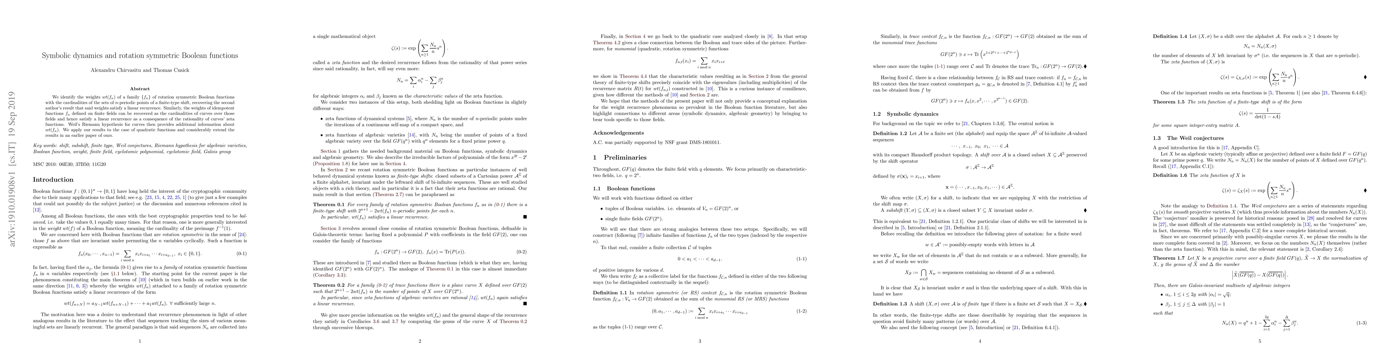 Researchers studied rotation symmetric Boolean functions and found that their weights satisfy linear recurrences, linked to properties of curves and finite fields.