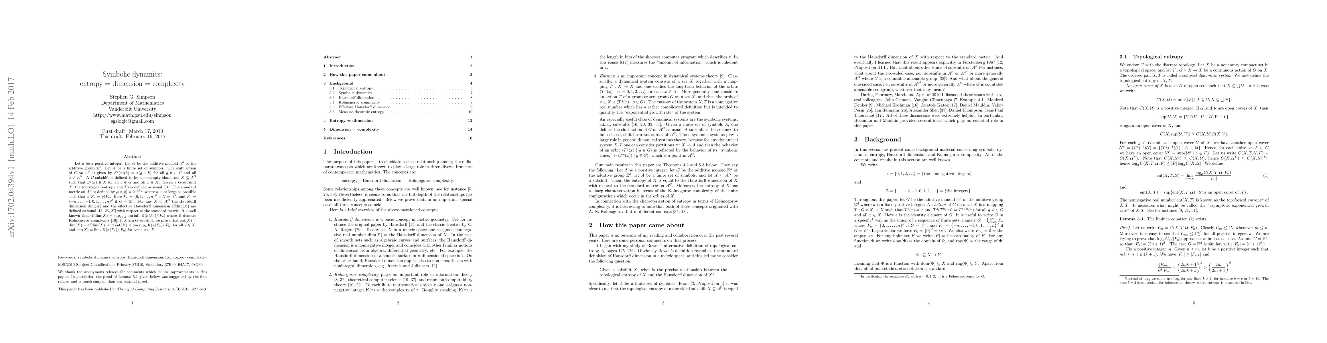 Let $G$ be the group $\mathbb{Z}^d$ or the monoid $\mathbb{N}^d$ where $d$ is a positive integer. Let $X$ be a subshift over $G$, i.e., a closed and shift-invariant subset of $A^G$ where $A$ is a finite alphabet. We prove that the topological entropy of $X$ is equal to the Hausdorff dimension of $X$ and has a sharp characterization in terms of the Kolmogorov complexity of finite pieces of the orbits of $X$. In the version of this paper that has been published in Theory of Computing Systems, the proof of Lemma 4.3 contains a confusing typographical error. This version of the paper corrects that error.
