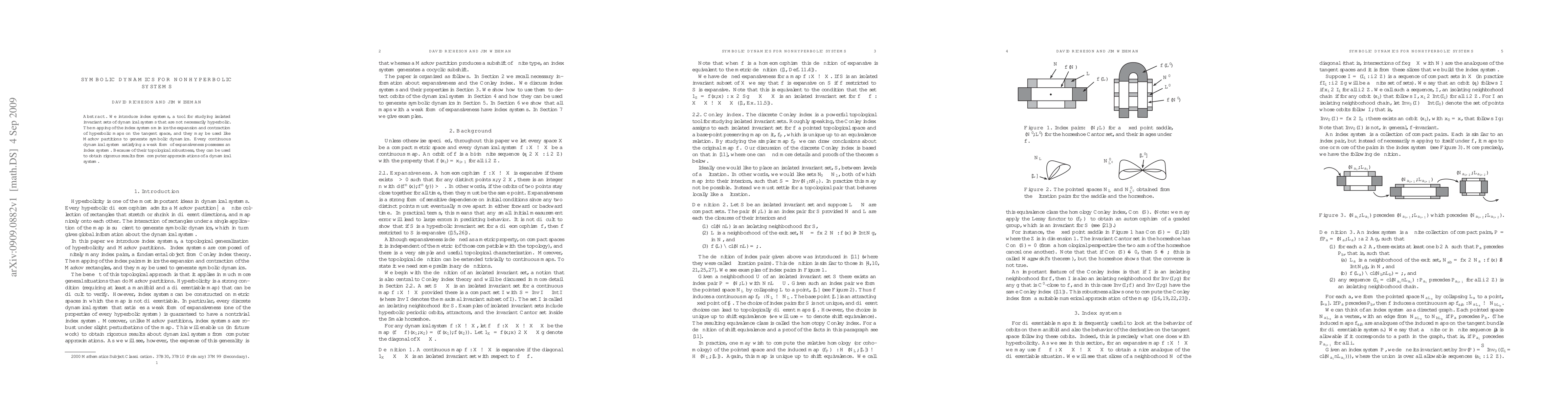 This paper introduces index systems for studying nonhyperbolic dynamical systems, allowing symbolic dynamics through mappings that mimic hyperbolic map behavior. These systems provide a robust method for obtaining rigorous results from computer approximations of continuous dynamical systems.