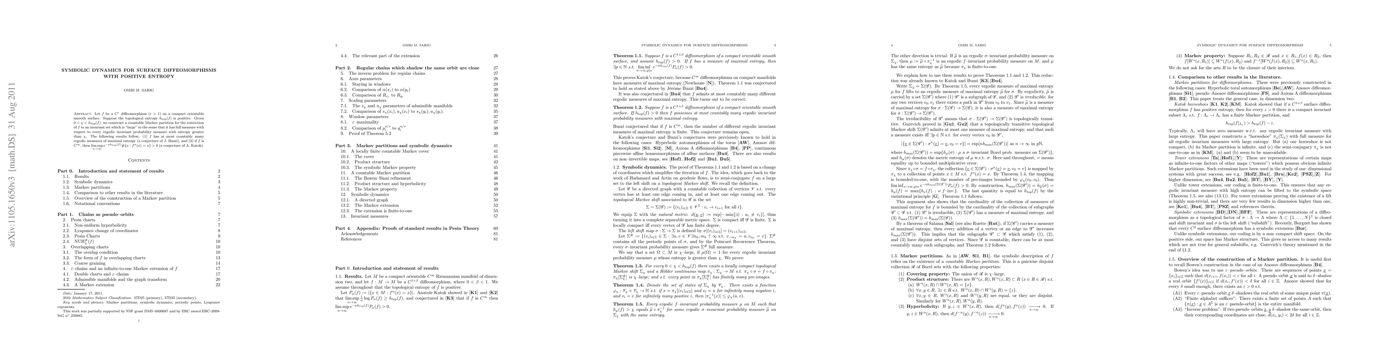 This paper constructs an invariant Borel set for a C^{1+\epsilon} surface diffeomorphism with positive topological entropy, ensuring it has a countable Markov partition and full measure under certain conditions. It also proves a conjecture by A. Katok regarding the limit superior of periodic points in such diffeomorphisms.