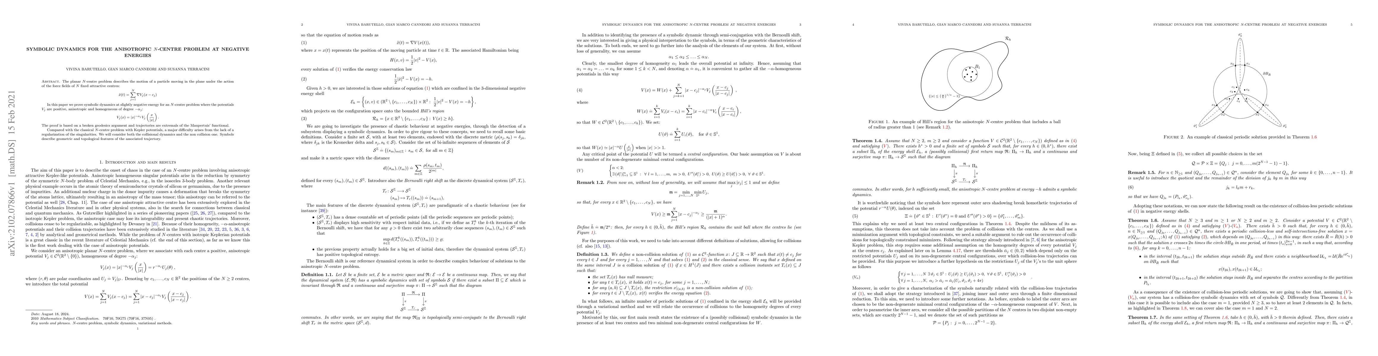 This paper proves symbolic dynamics for the anisotropic $N$-centre problem at slightly negative energies, employing a broken geodesics argument and Maupertuis' functional. The study addresses both collisional and non-collision dynamics, highlighting geometric and topological features described by symbols.