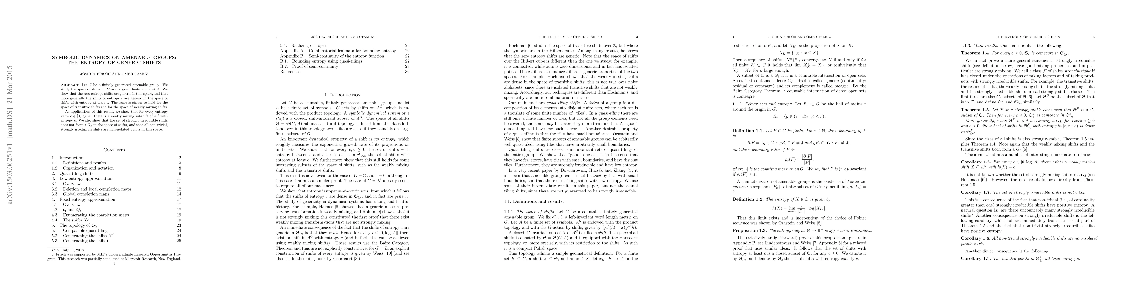 The paper shows that generic shifts on finitely generated amenable groups have specific properties, including being either weakly mixing or having a certain entropy level, and demonstrates applications of these findings in the study of subshifts.