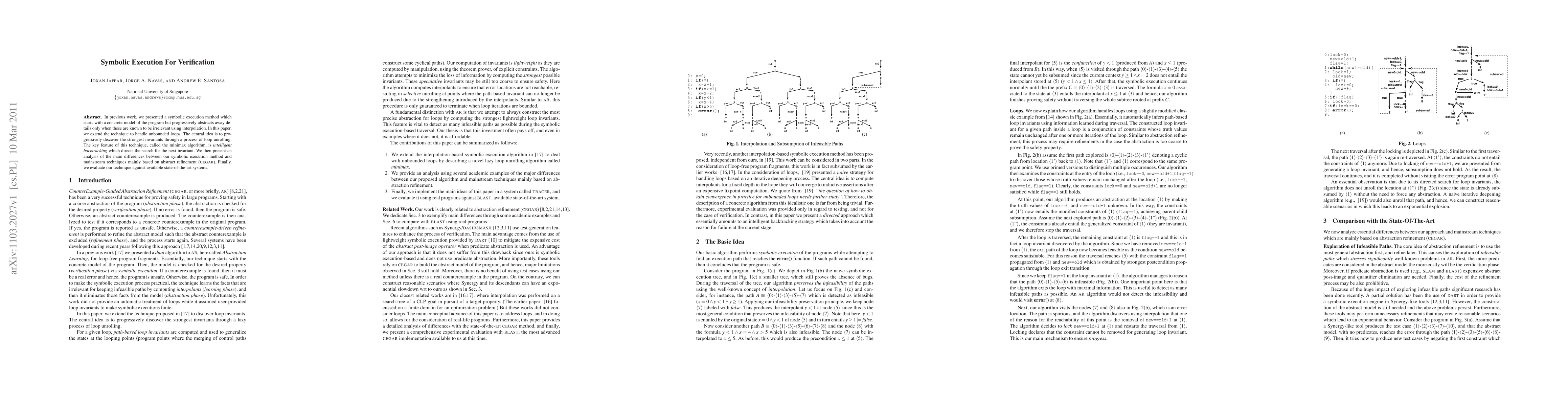 In previous work, we presented a symbolic execution method which starts with a concrete model of the program but progressively abstracts away details only when these are known to be irrelevant using interpolation. In this paper, we extend the technique to handle unbounded loops. The central idea is to progressively discover the strongest invariants through a process of loop unrolling. The key feature of this technique, called the minimax algorithm, is intelligent backtracking which directs the search for the next invariant. We then present an analysis of the main differences between our symbolic execution method and mainstream techniques mainly based on abstract refinement (CEGAR). Finally, we evaluate our technique against available state-of-the-art systems.