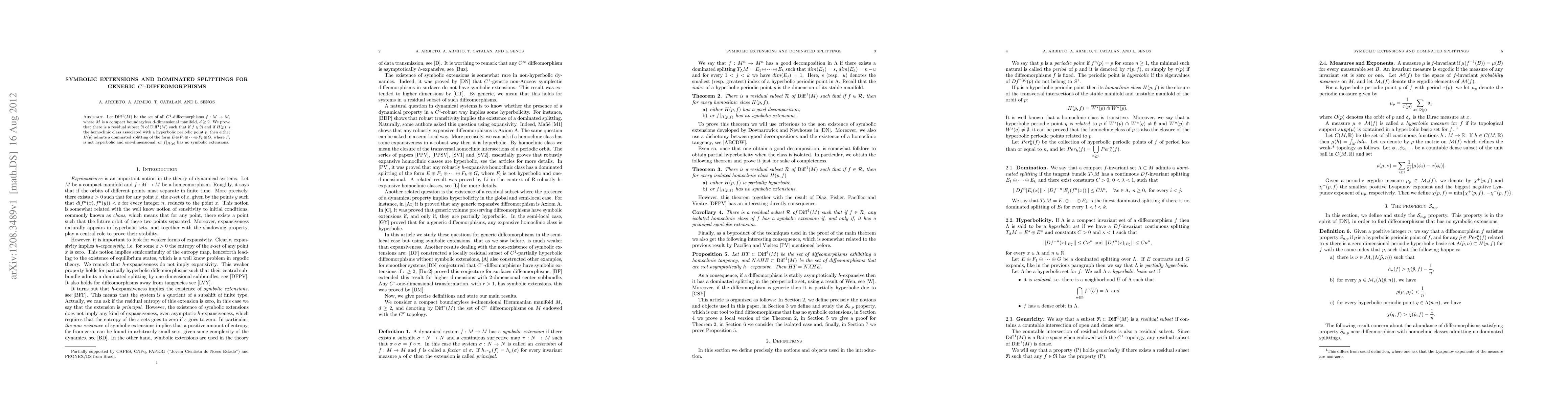 Let Diff^1(M) be the set of all C^1-diffeomorphisms f : M \rightarrow M, where M is a compact boundaryless d-dimensional manifold, d \geq 2. We prove that there is a residual subset R of Diff^1(M) such that if f \in R and if H(p) is the homoclinic class associated with a hyperbolic periodic point p, then either H(p) admits a dominated splitting of the form E\oplusF1 \oplus...\oplusFk \oplusG, where Fi is not hyperbolic and one-dimensional, or f|H(p) has no symbolic extensions.