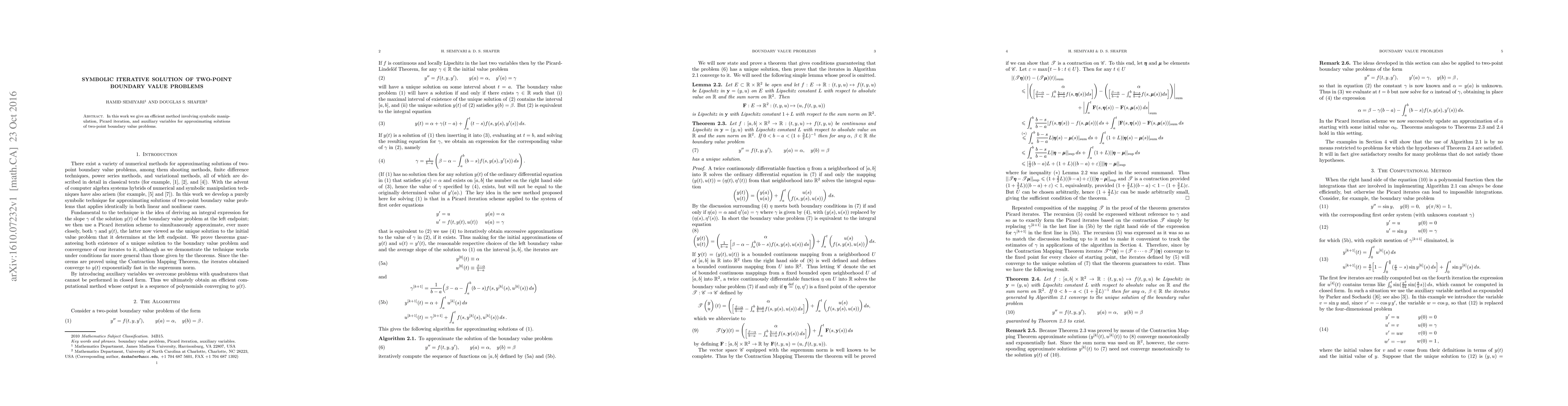 Summary: This paper presents an efficient symbolic method combining Picard iteration and auxiliary variables to approximate solutions for two-point boundary value problems, leveraging symbolic manipulation for improved accuracy.