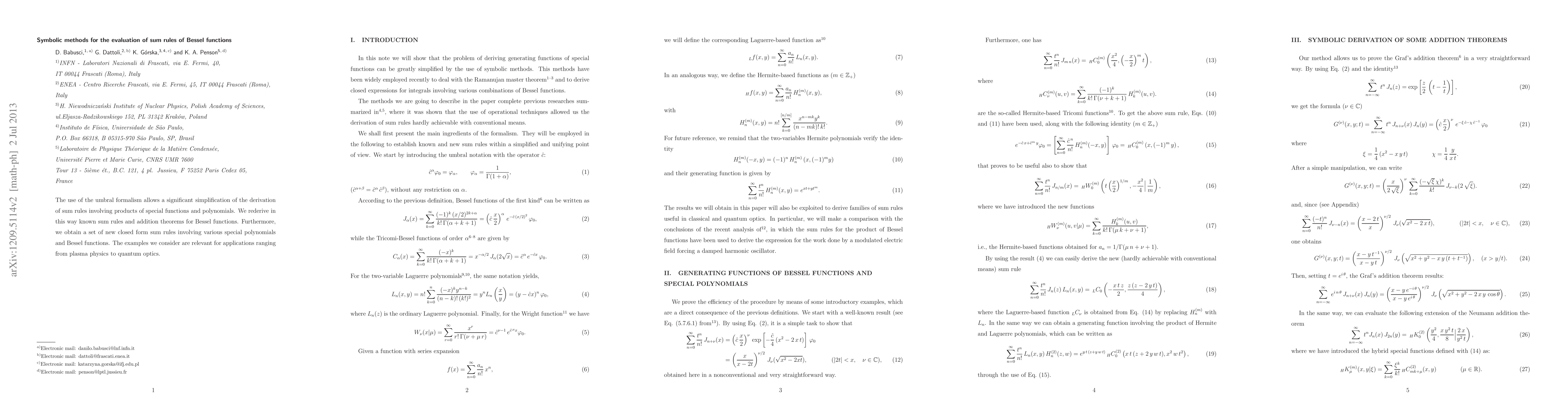 This paper employs umbral formalism to simplify the derivation of sum rules and addition theorems for Bessel functions, presenting both known results and new closed form sum rules involving special polynomials, with applications in plasma physics and quantum optics.