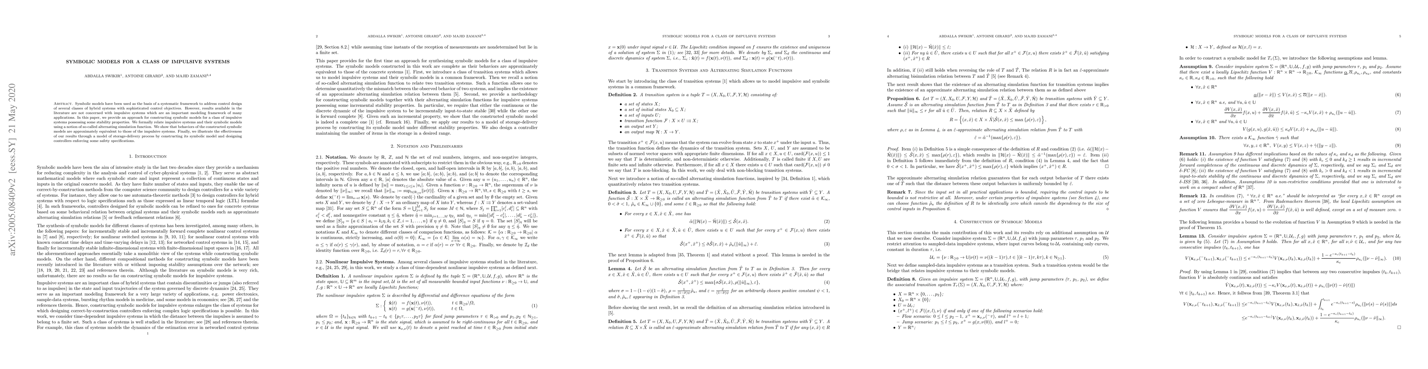This paper introduces a new approach for constructing symbolic models of impulsive systems, showing their behavior is approximately equivalent to the original system, with applications in controlling storage-delivery processes and enforcing safety specifications.