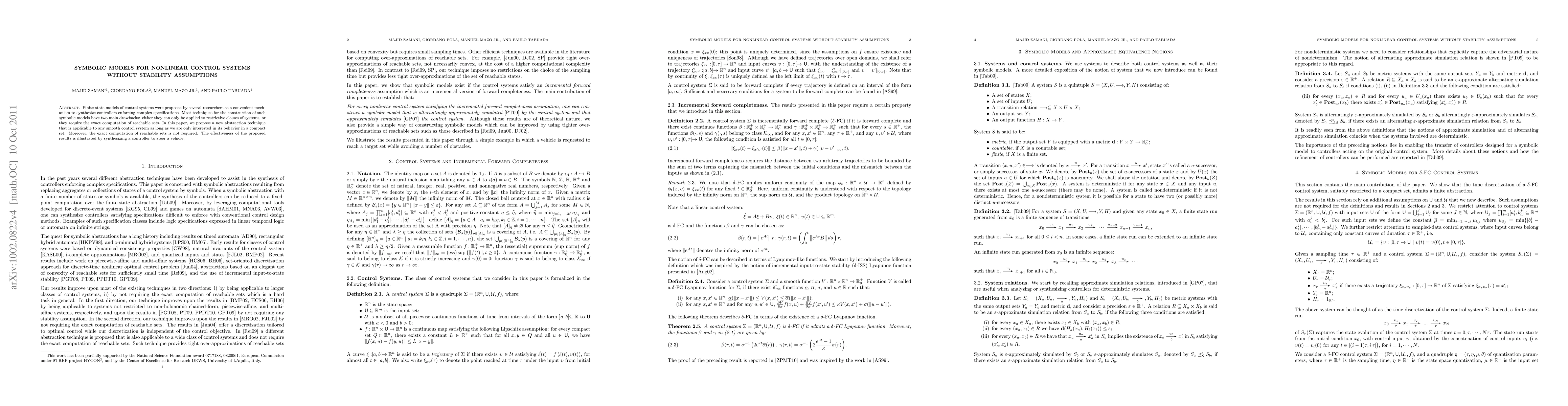 This paper presents a new abstraction technique for constructing finite-state models of nonlinear control systems without relying on stability assumptions. Unlike existing methods, this approach is applicable to any smooth control system and does not require the exact computation of reachable sets, demonstrated through the synthesis of a controller for a vehicle.