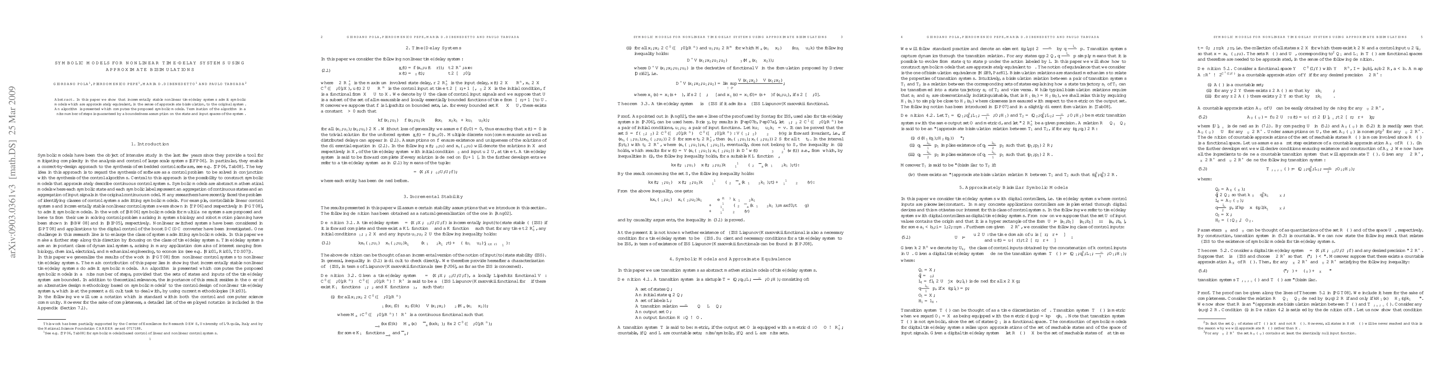 This paper proposes a method for constructing symbolic models for nonlinear time-delay systems based on approximate bisimulations, aiming to simplify control design. The symbolic models allow for the integration of software and hardware constraints, and the paper demonstrates that these models can be made arbitrarily close to the original system.