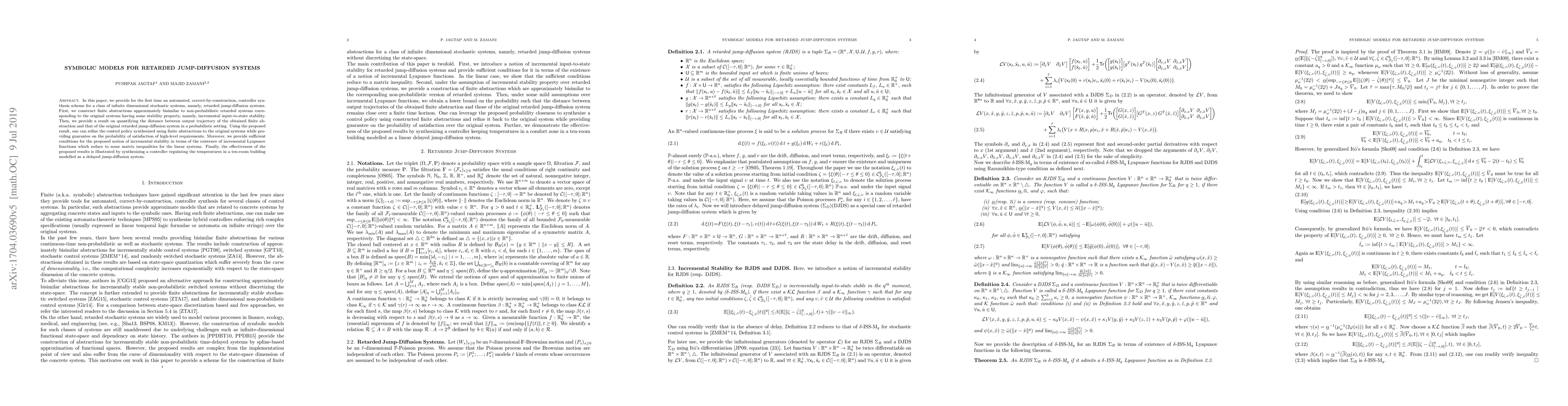 This paper introduces an automated controller synthesis scheme for infinite-dimensional stochastic systems, specifically retarded jump-diffusion systems, by constructing finite abstractions that are approximately bisimilar to the original systems. It also provides a method to quantify the distance between the outputs of the finite abstraction and the original system, ensuring the satisfaction of high-level requirements with probabilistic guarantees.