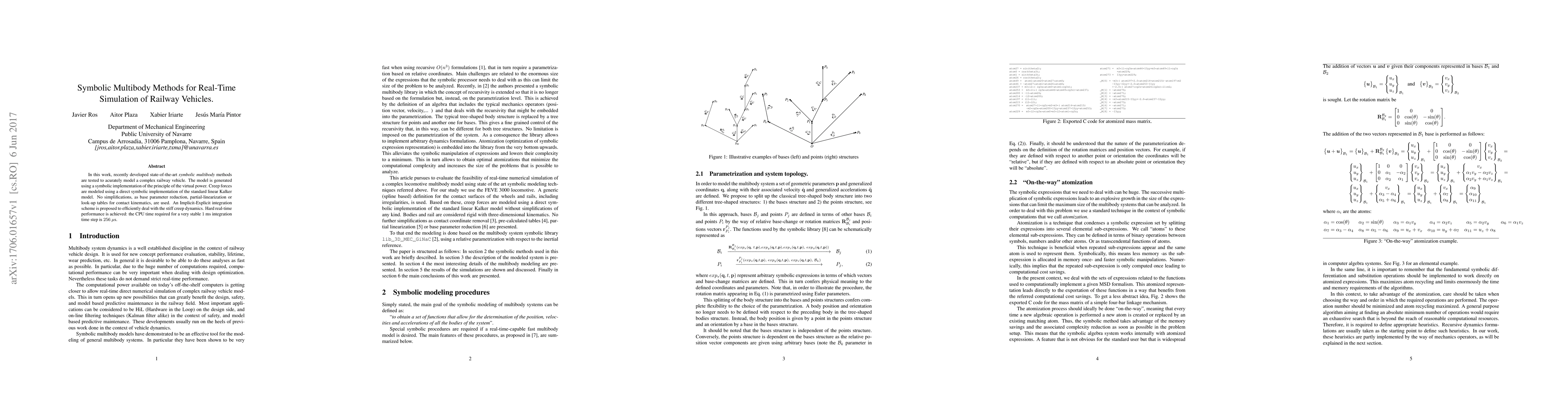 This paper tests advanced symbolic multibody methods for real-time simulation of railway vehicles, employing a fully symbolic implementation of the virtual power principle and the linear Kalker model for creep forces without simplifications. An Implicit-Explicit integration scheme ensures efficient stiff dynamics handling, achieving hard real-time performance with 256 μs CPU time per 1 ms integration step.