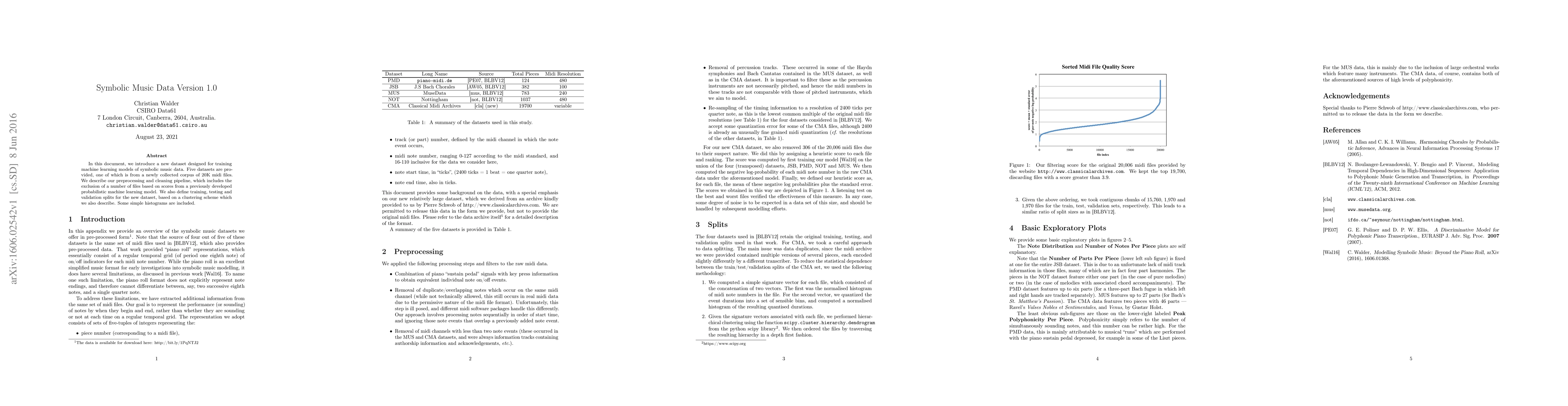 In this document, we introduce a new dataset designed for training machine learning models of symbolic music data. Five datasets are provided, one of which is from a newly collected corpus of 20K midi files. We describe our preprocessing and cleaning pipeline, which includes the exclusion of a number of files based on scores from a previously developed probabilistic machine learning model. We also define training, testing and validation splits for the new dataset, based on a clustering scheme which we also describe. Some simple histograms are included.