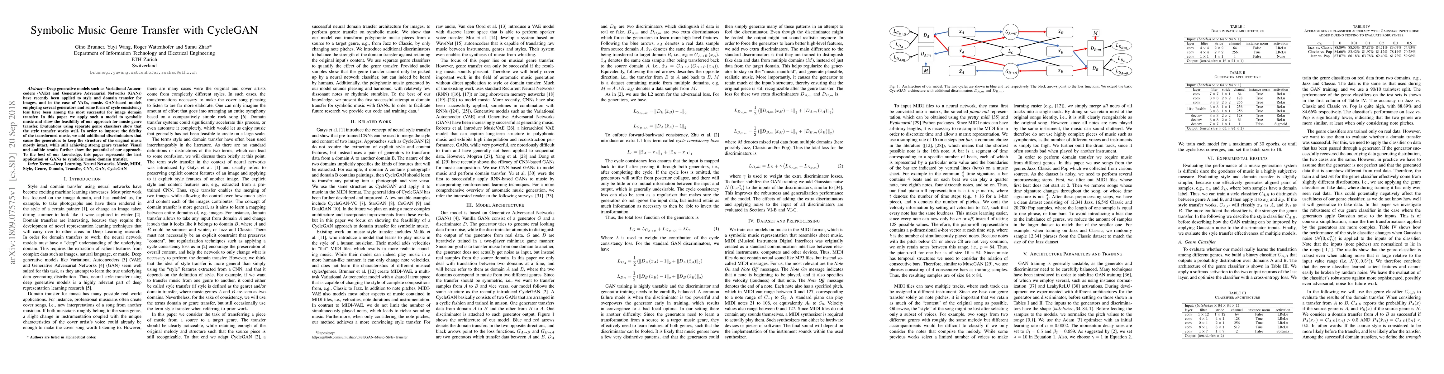 This paper explores the application of CycleGAN for symbolic music genre transfer, demonstrating successful style transfer through additional discriminators that maintain the original music's structure. Evaluations using genre classifiers and qualitative results indicate the effectiveness of the proposed method.
