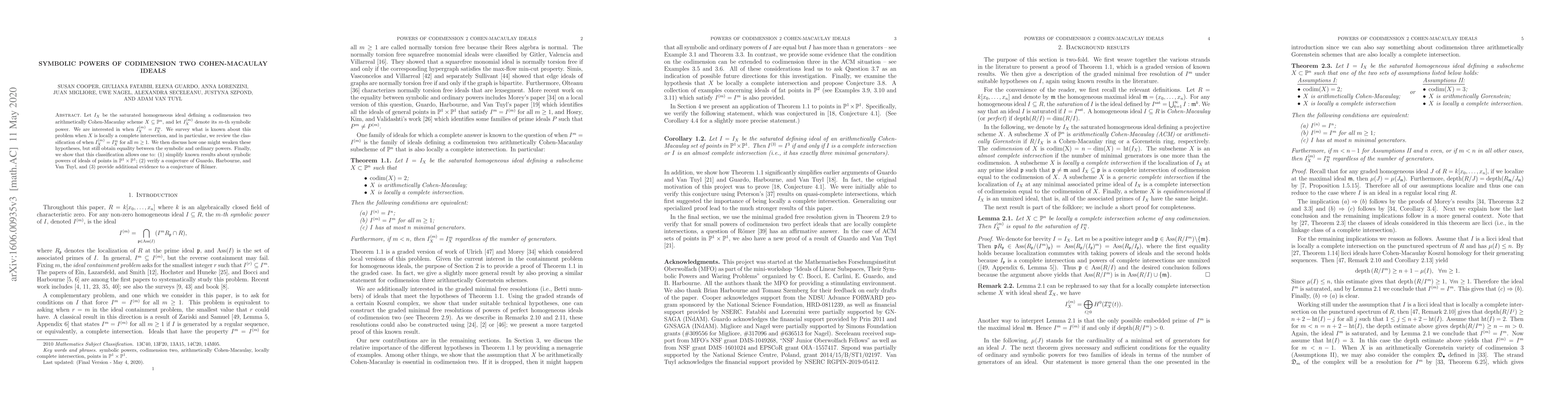 Let $I_X$ be the saturated homogeneous ideal defining a codimension two arithmetically Cohen-Macaulay scheme $X \subseteq \mathbb{P}^n$, and let $I_X^{(m)}$ denote its $m$-th symbolic power. We are interested in when $I_X^{(m)} = I_X^m$. We survey what is known about this problem when $X$ is locally a complete intersection, and in particular, we review the classification of when $I_X^{(m)} = I_X^m$ for all $m \geq 1$. We then discuss how one might weaken these hypotheses, but still obtain equality between the symbolic and ordinary powers. Finally, we show that this classification allows one to: (1) simplify known results about symbolic powers of ideals of points in $\mathbb{P}^1 \times \mathbb{P}^1$; (2) verify a conjecture of Guardo, Harbourne, and Van Tuyl, and (3) provide additional evidence to a conjecture of R\"omer.