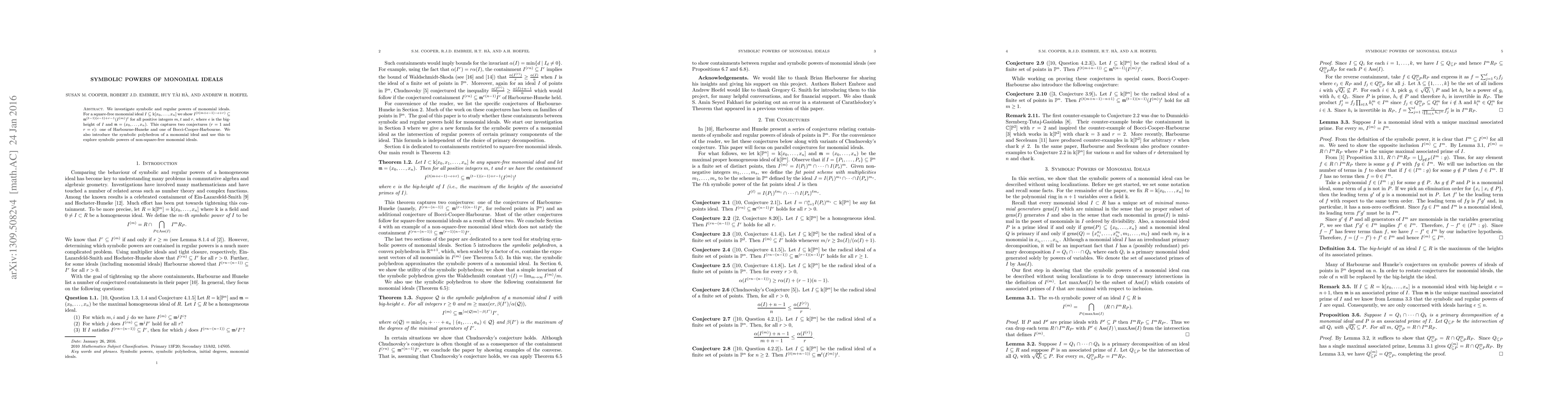 This paper explores symbolic and regular powers of square-free monomial ideals in polynomial rings, proving a containment relation that verifies two conjectures by Harborne-Huneke and Bocci-Cooper-Harbourne. It also introduces the symbolic polyhedron concept to study symbolic powers in non-square-free cases.