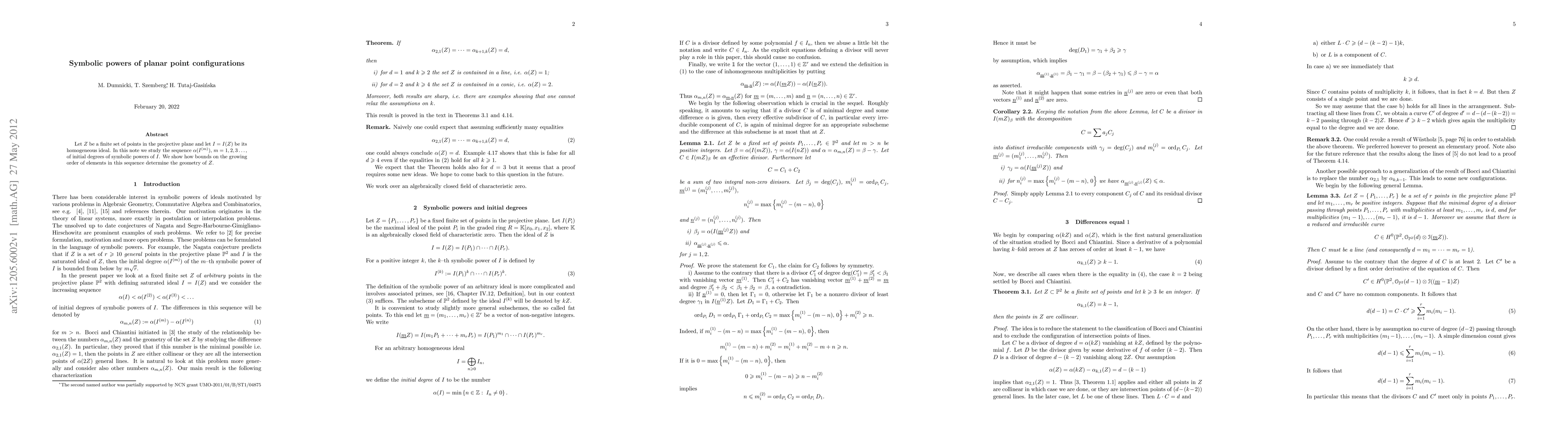 We study initial degrees of symbolic powers of ideals of arbitrary finite sets of points in the projective plane over an algebraically closed field of characteristic zero. We show, how bounds on the growth of these degrees determine the geometry of the given set of points.