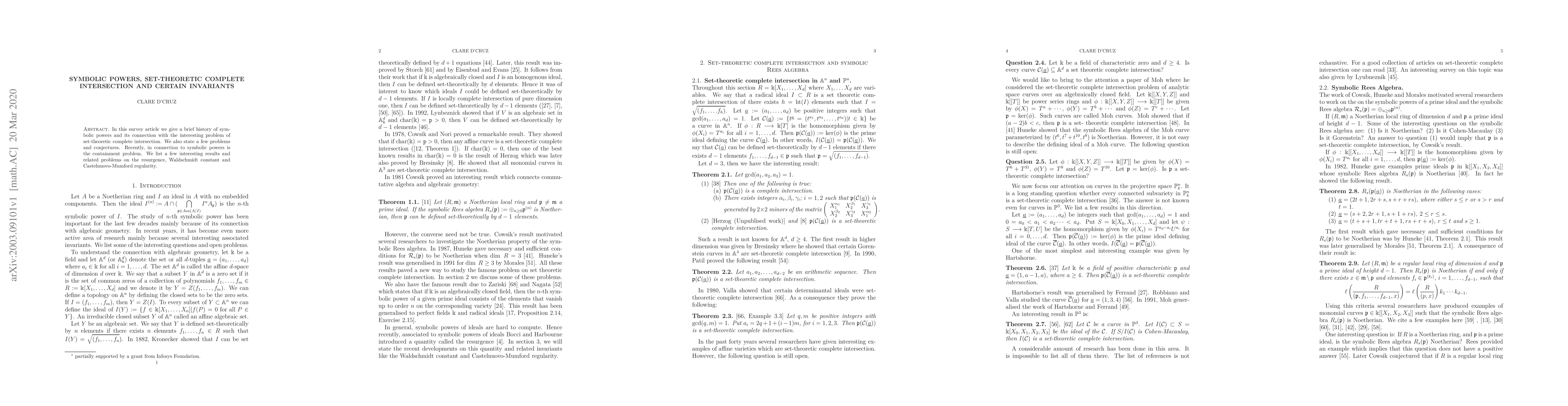 This paper explores the connection between symbolic powers and set-theoretic complete intersection, highlighting recent results and open problems in the field. It also touches on related topics like resurgence and Waldschmidt constant, offering insights into these areas of mathematics.