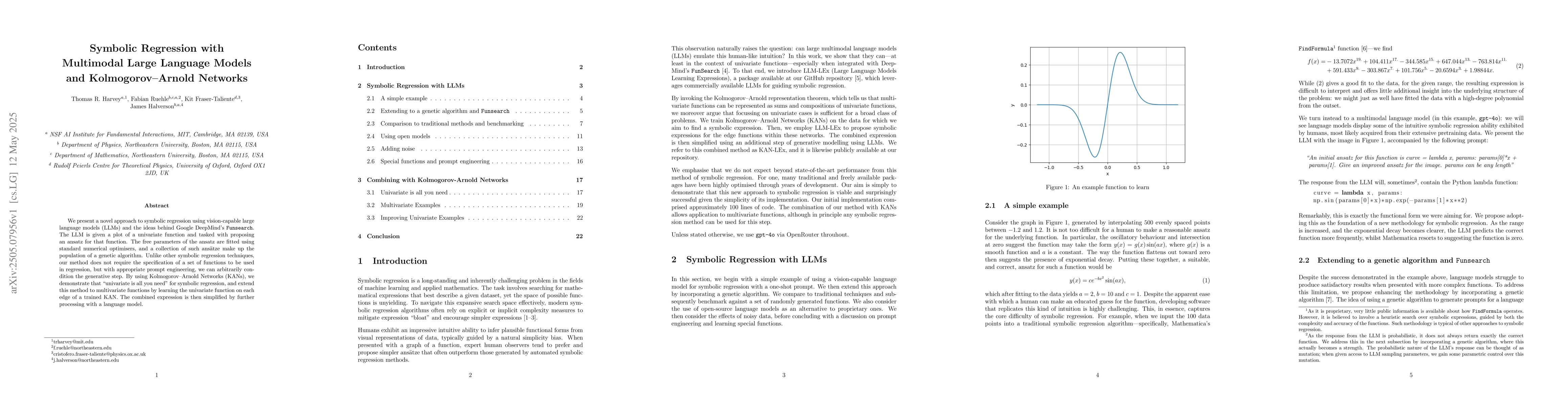 This research paper introduces a novel approach to symbolic regression using vision-capable large language models and Kolmogorov Arnold Networks, allowing for arbitrary function selection without pre-defined sets.
