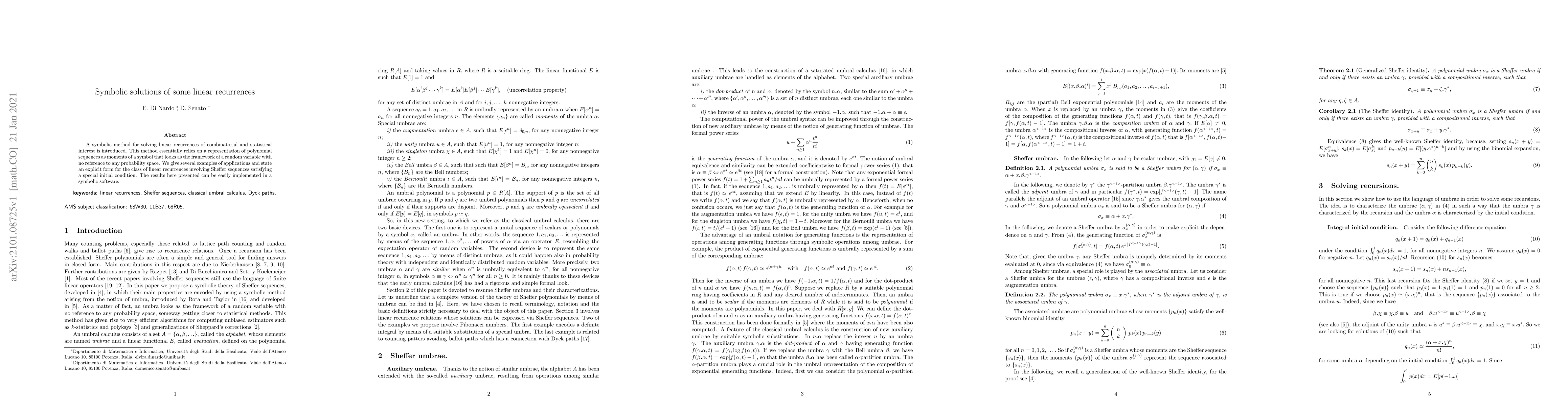 The paper introduces a symbolic method for solving linear recurrences, representing polynomial sequences as moments of a symbol within a random variable framework without explicit reference to a probability space.