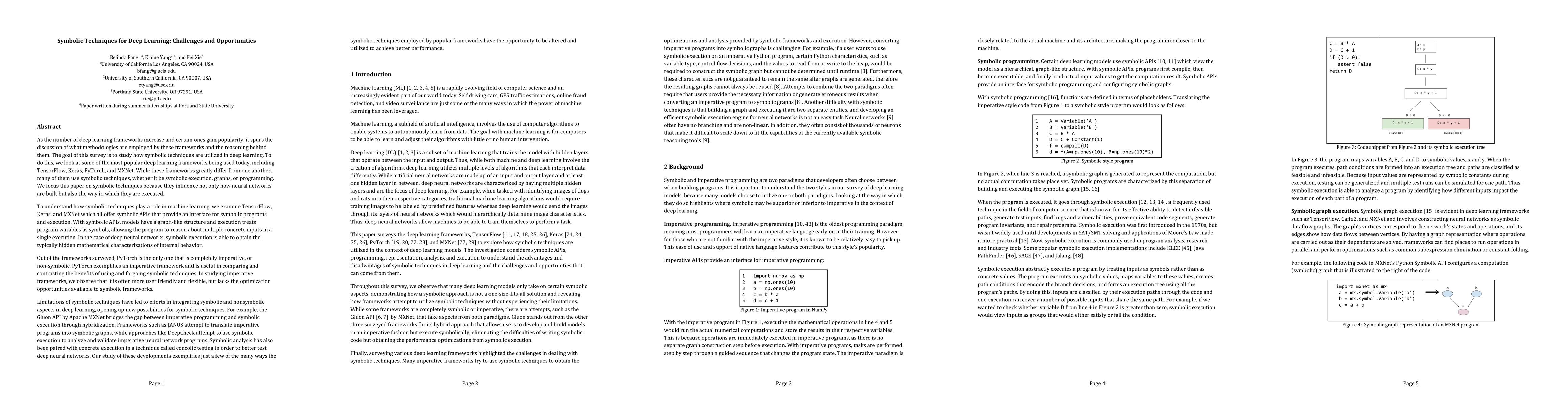 This paper surveys the use of symbolic techniques in popular deep learning frameworks like TensorFlow, Keras, PyTorch, and MXNet, highlighting how symbolic execution, graphs, and programming influence neural network construction and execution. It explores the integration of symbolic and nonsymbolic methods to enhance performance and discusses emerging opportunities such as hybridization and concolic testing.