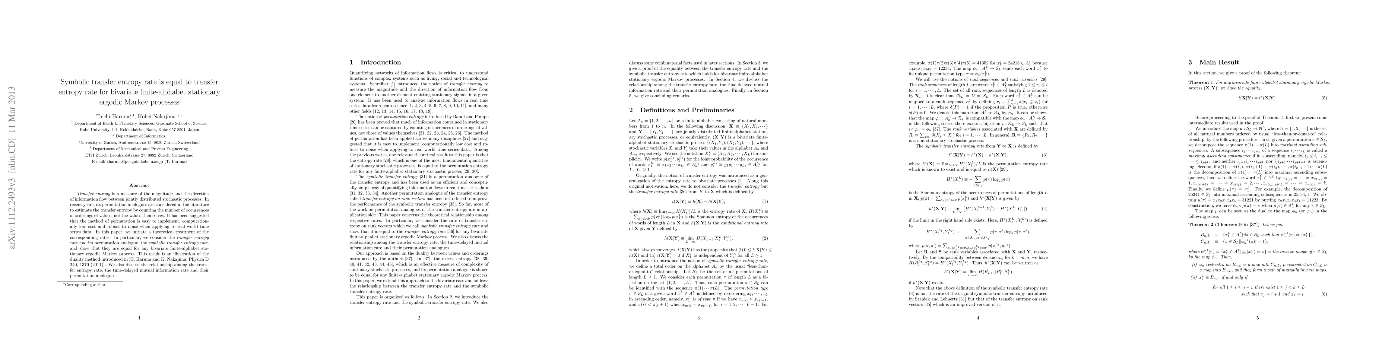 This paper demonstrates that the symbolic transfer entropy rate equals the transfer entropy rate for bivariate finite-alphabet stationary ergodic Markov processes. The study highlights the equivalence using the duality method and discusses the implications for real-world time series data analysis.