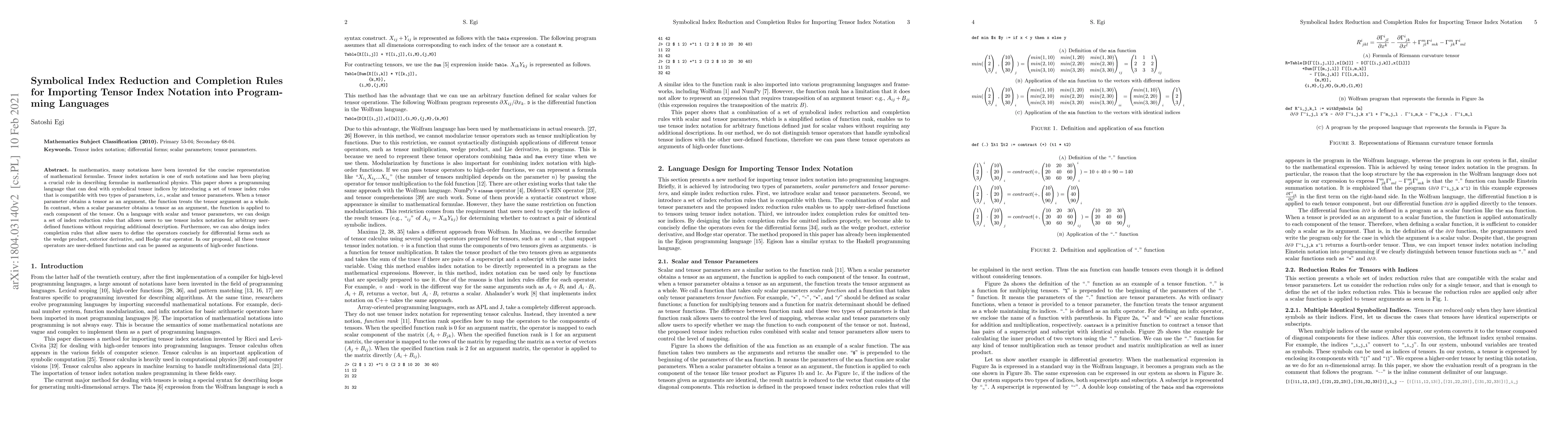 This paper introduces a programming language extension that incorporates tensor index notation, enabling the use of symbolic tensor indices for both scalar and tensor parameters. It proposes index reduction and completion rules to facilitate the concise representation and manipulation of tensor operations, including differential forms.