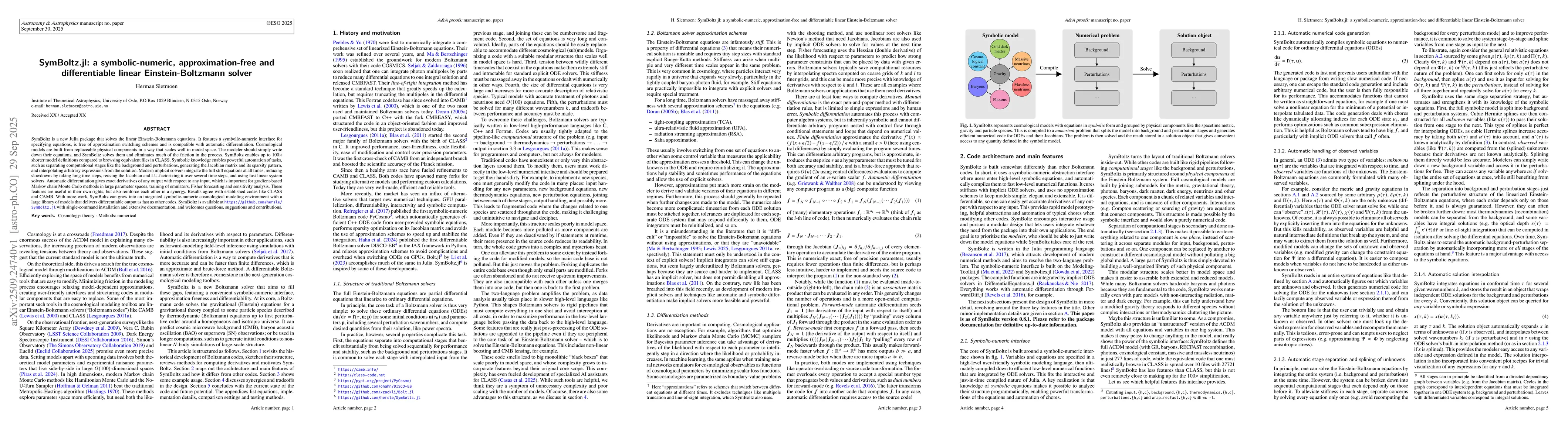 The research employs a symbolic-numeric approach to solve the linearized Einstein-Boltzmann equations, leveraging the SymPy and Julia libraries for exact symbolic manipulation and high-performance numerical computations. It integrates multiple cosmological species and their interactions while maintaining analytical precision.