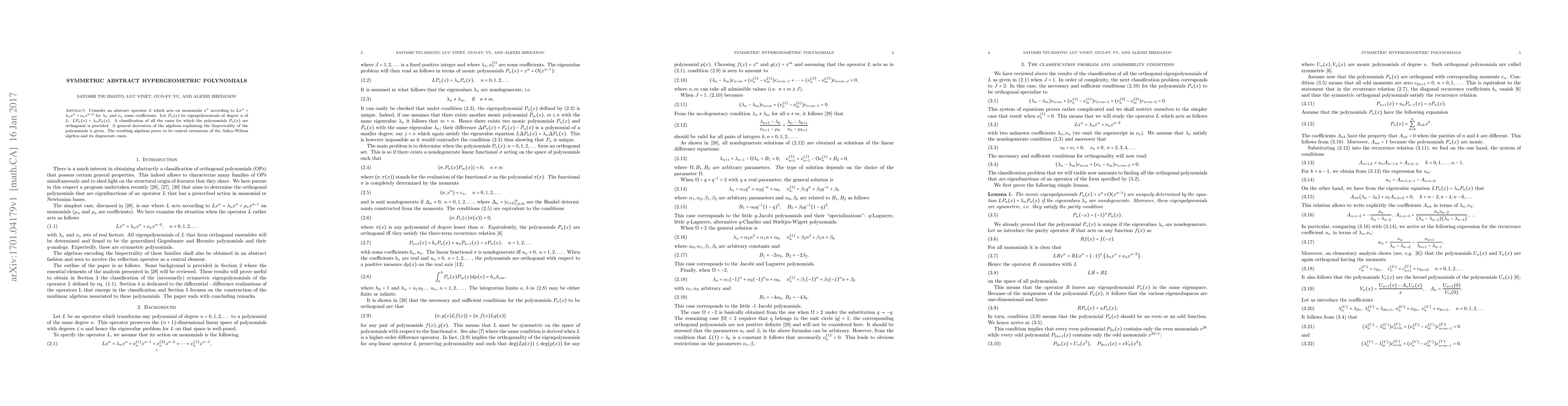 This paper classifies cases where polynomials eigen to an abstract operator L are orthogonal, deriving algebras that explain their bispectrality. These algebras are central extensions of the Askey-Wilson algebra and its degenerate forms.