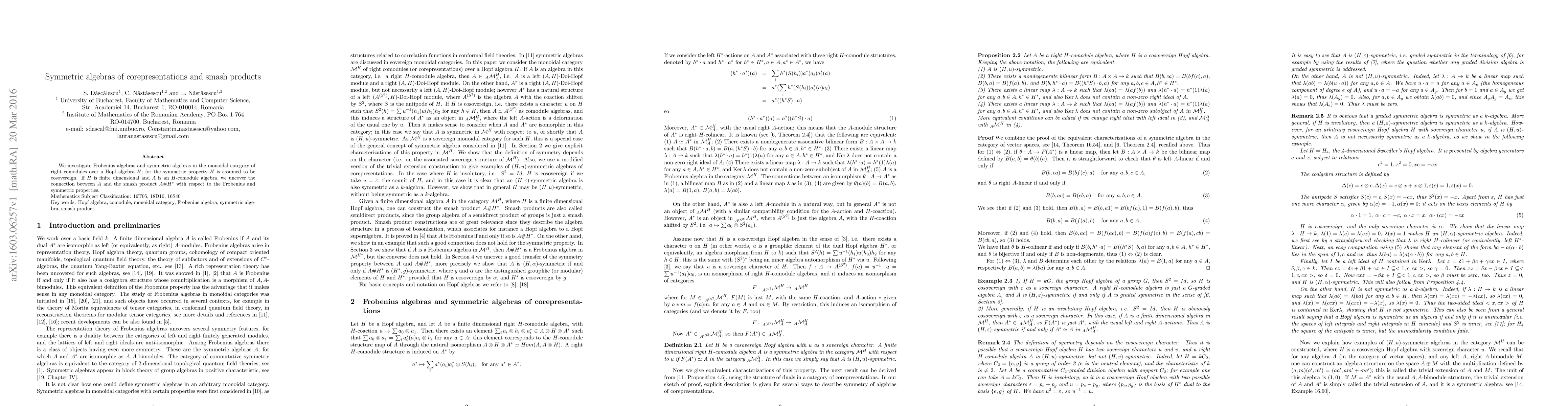 We investigate Frobenius algebras and symmetric algebras in the monoidal category of right comodules over a Hopf algebra $H$; for the symmetric property $H$ is assumed to be cosovereign. If $H$ is finite dimensional and $A$ is an $H$-comodule algebra, we uncover the connection between $A$ and the smash product $A\# H^*$ with respect to the Frobenius and symmetric properties.