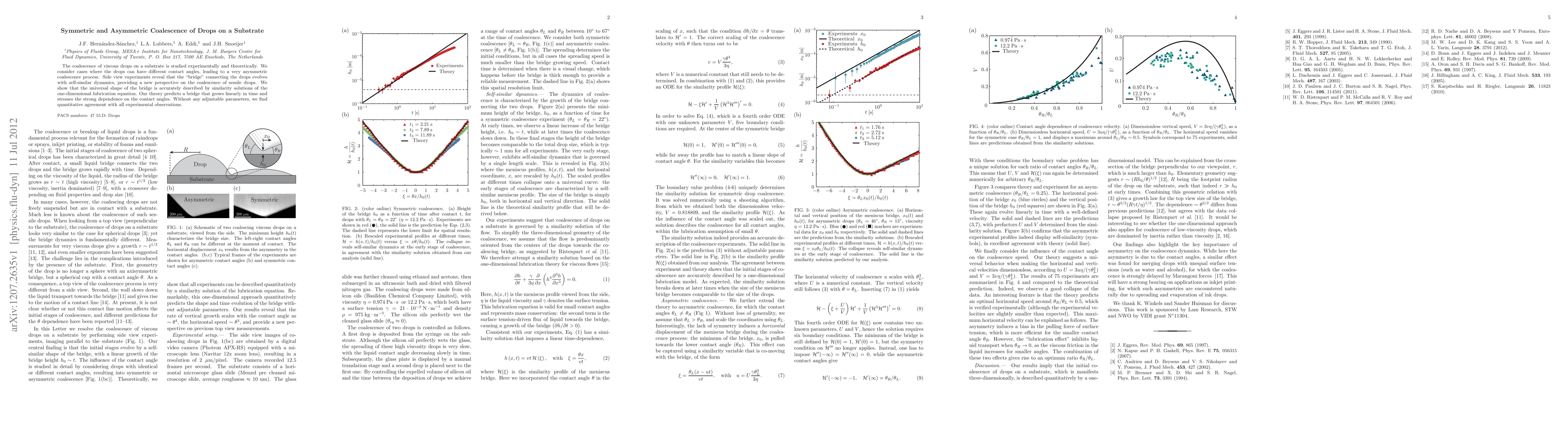 This paper investigates the coalescence of viscous drops on a substrate, both experimentally and theoretically, focusing on asymmetric scenarios due to differing contact angles. The study reveals self-similar dynamics in the evolving "bridge" between drops and confirms the linear growth of the bridge over time, with strong dependence on contact angles, supported by quantitative agreement with experimental observations.