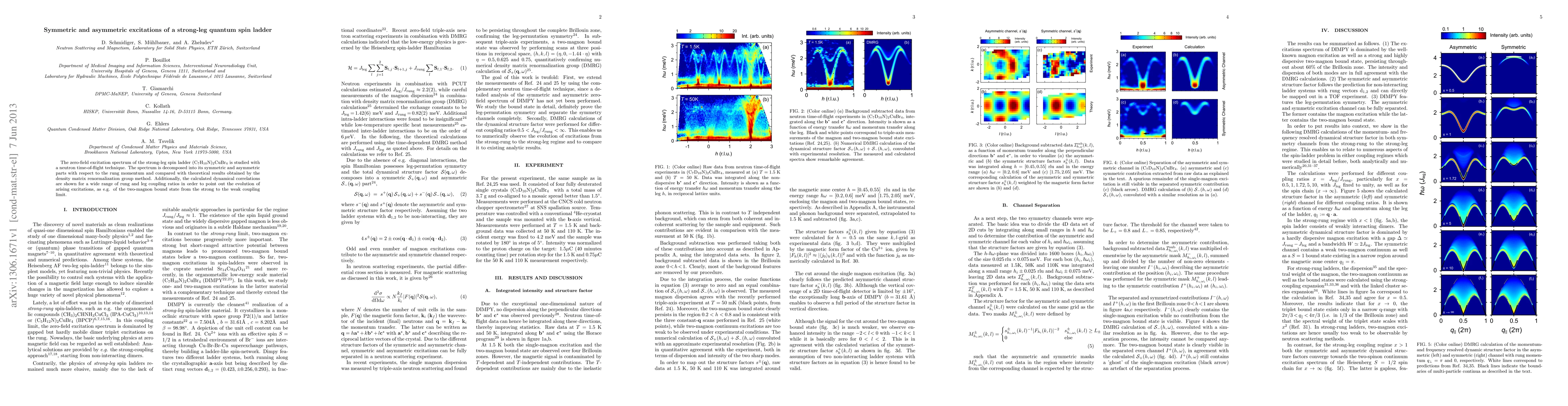 This paper investigates the zero-field excitation spectrum of the strong-leg spin ladder compound (DIMPY) using neutron scattering, decomposing it into symmetric and asymmetric parts and comparing it with theoretical density matrix renormalization group results. The study highlights the evolution of excitations, such as the two-magnon bound state, across varying rung and leg coupling ratios.