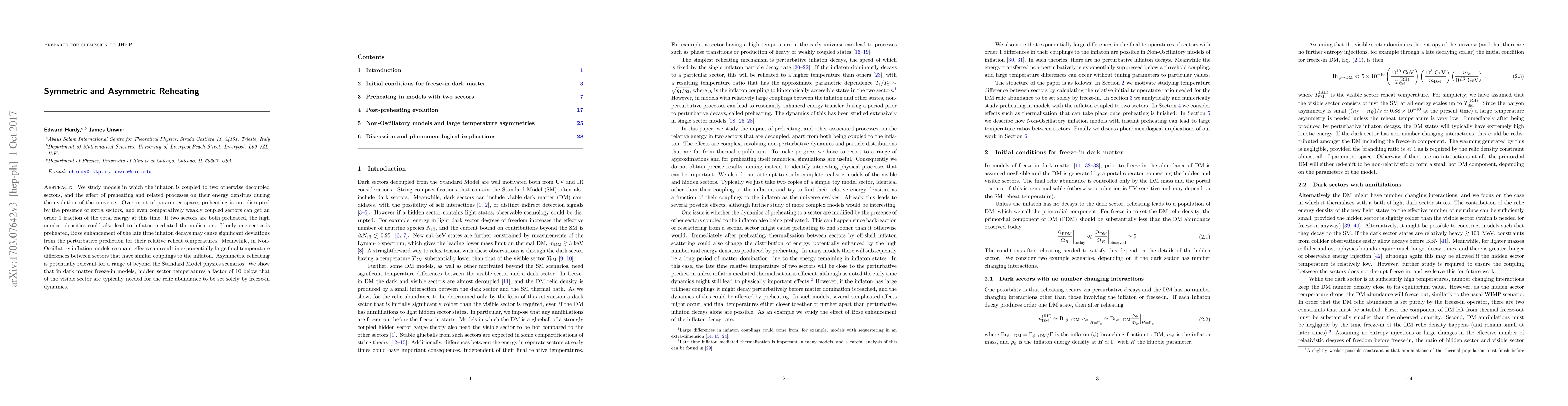 We study models in which the inflaton is coupled to two otherwise decoupled sectors, and the effect of preheating and related processes on their energy densities during the evolution of the universe. Over most of parameter space, preheating is not disrupted by the presence of extra sectors, and even comparatively weakly coupled sectors can get an order 1 fraction of the total energy at this time. If two sectors are both preheated, the high number densities could also lead to inflaton mediated thermalisation. If only one sector is preheated, Bose enhancement of the late time inflaton decays may cause significant deviations from the perturbative prediction for their relative reheat temperatures. Meanwhile, in Non-Oscillatory inflation models resonant effects can result in exponentially large final temperature differences between sectors that have similar couplings to the inflaton. Asymmetric reheating is potentially relevant for a range of beyond the Standard Model physics scenarios. We show that in dark matter freeze-in models, hidden sector temperatures a factor of 10 below that of the visible sector are typically needed for the relic abundance to be set solely by freeze-in dynamics.