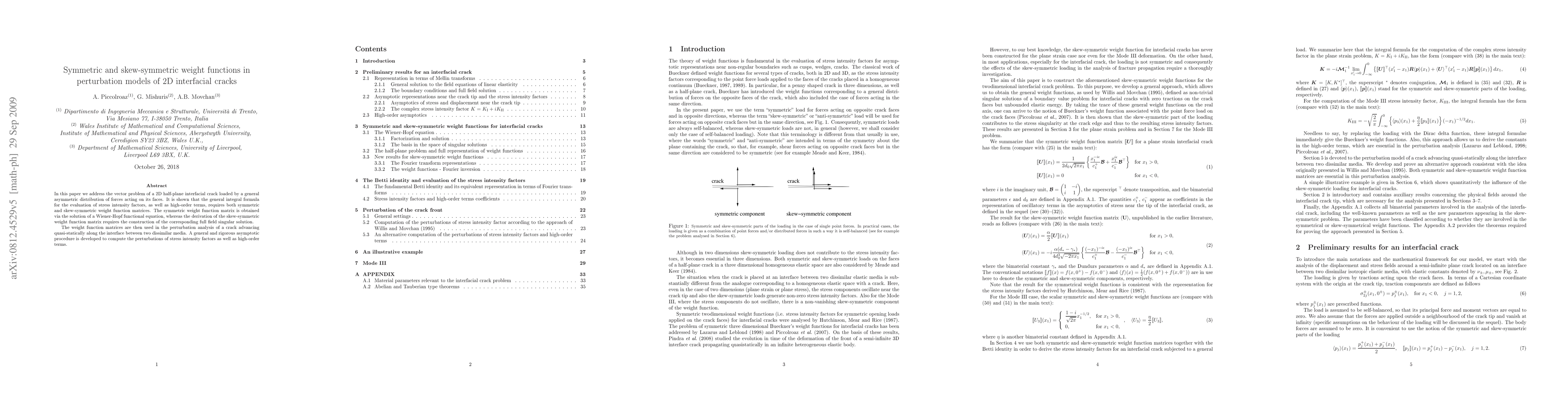 This paper investigates the vector problem of a 2D interfacial crack under asymmetric force distributions, demonstrating that both symmetric and skew-symmetric weight function matrices are essential for evaluating stress intensity factors. The study develops a rigorous asymptotic procedure for perturbation analysis using these matrices.