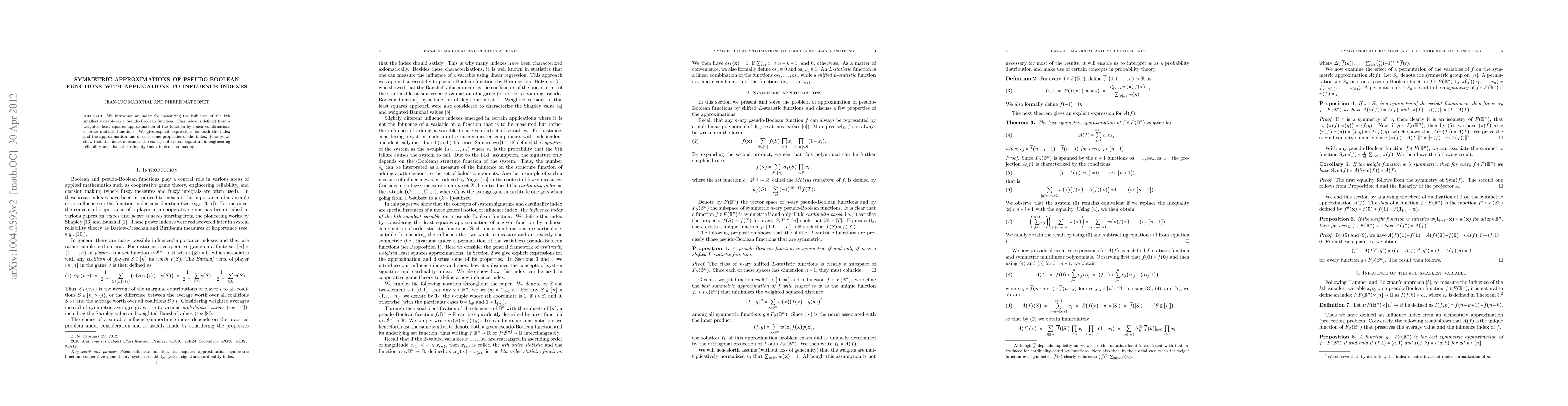 Researchers introduced an index to measure the influence of variables on pseudo-Boolean functions, showing it subsumes concepts like system signature in engineering reliability and cardinality index in decision making.