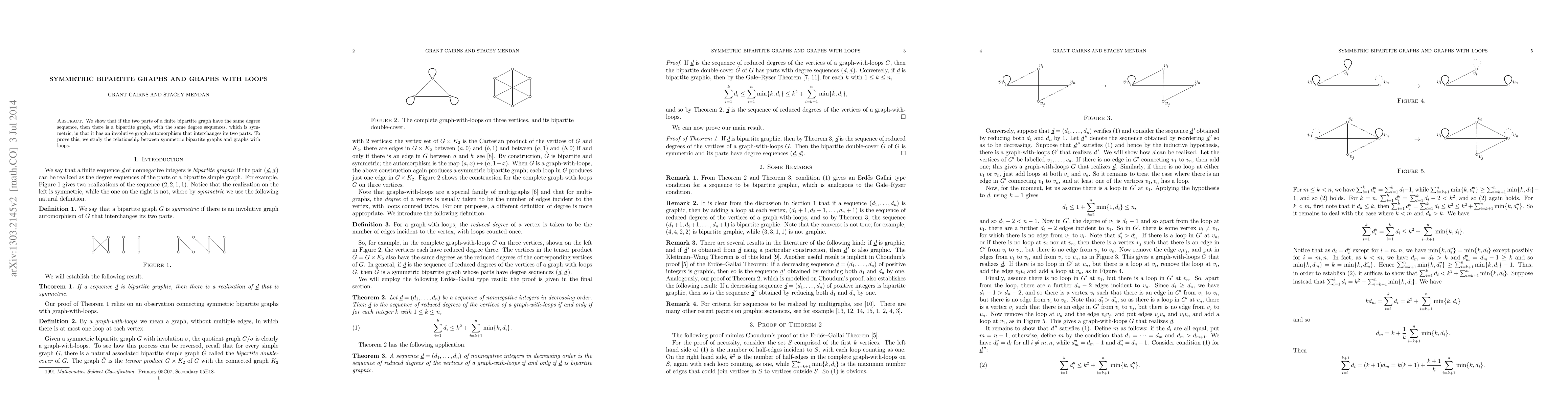 We show that if the two parts of a finite bipartite graph have the same degree sequence, then there is a bipartite graph, with the same degree sequences, which is symmetric, in that it has an involutive graph automorphism that interchanges its two parts. To prove this, we study the relationship between symmetric bipartite graphs and graphs with loops.