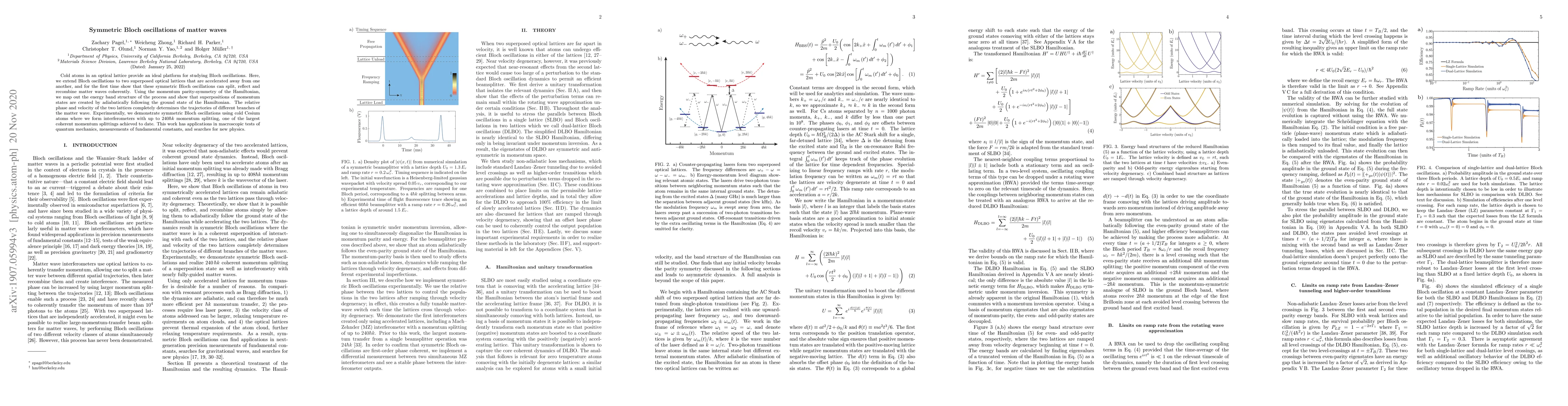 Researchers demonstrate symmetric Bloch oscillations in cold atoms using two superposed optical lattices, showing coherent splitting, reflection, and recombination of matter waves. They map out the energy band structure and reveal the creation of momentum state superpositions, achieving one of the largest coherent momentum splittings to date with Cesium atoms.