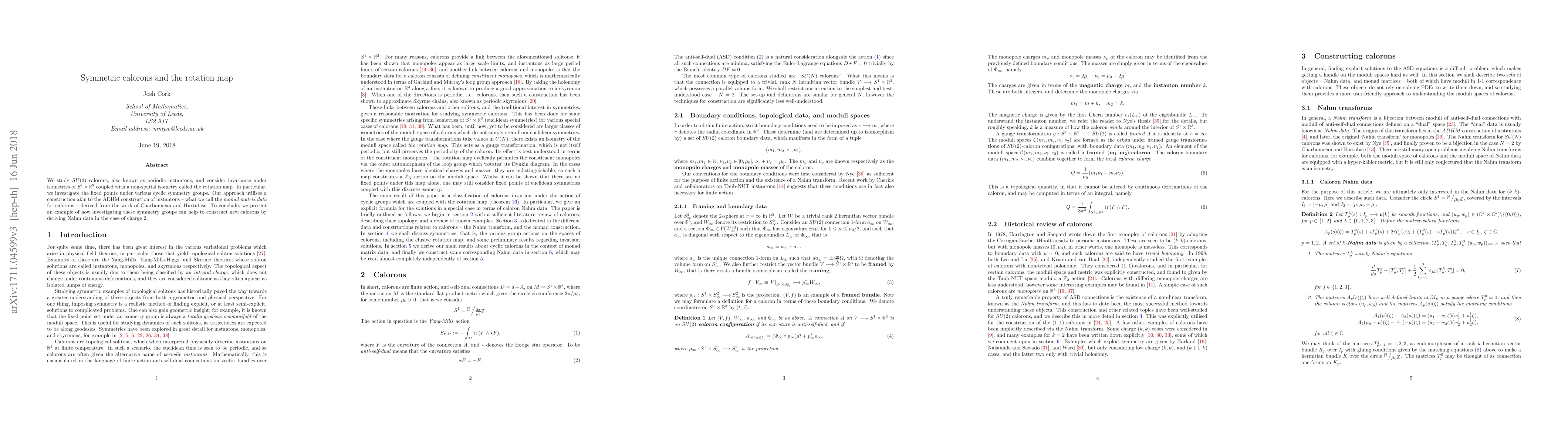 This paper explores $SU(2)$ calorons, periodic instantons invariant under symmetries of $S^1\times\mathbb{R}^3$ and a rotation map, focusing on fixed points under cyclic symmetry groups. It employs a monad matrix construction to derive Nahm data, demonstrating how symmetry analysis aids in constructing new calorons.