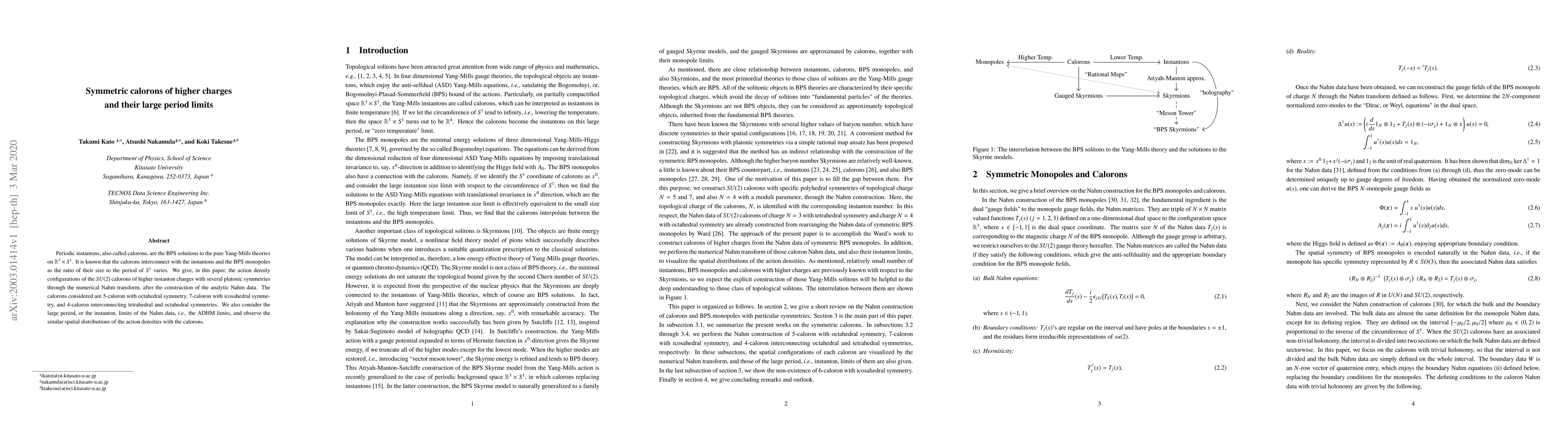 This paper numerically constructs the action density configurations of higher-charge symmetric calorons in $SU(2)$ Yang-Mills theories using the Nahm transform, and examines their large period limits, observing similar spatial distributions to the corresponding instantons.